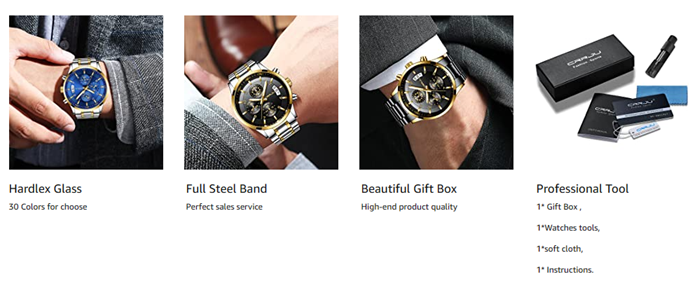 • PERFECT GIFT BOX :with a luxurious CRRJU watch box,a watch tool,Warranty card and manual.this wristwatch is a intimate gift for yourself or for that special someone