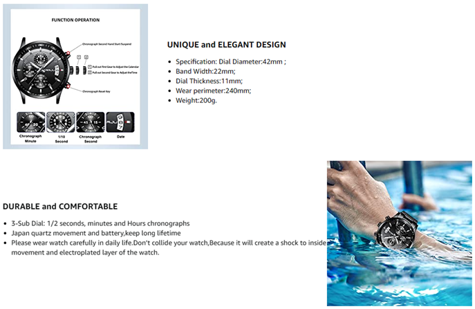 • UNIQUE ELEGANT DESIGN: Exquisite Pointer;Second,Minute and Hour Chronographs;Classic Date Window;