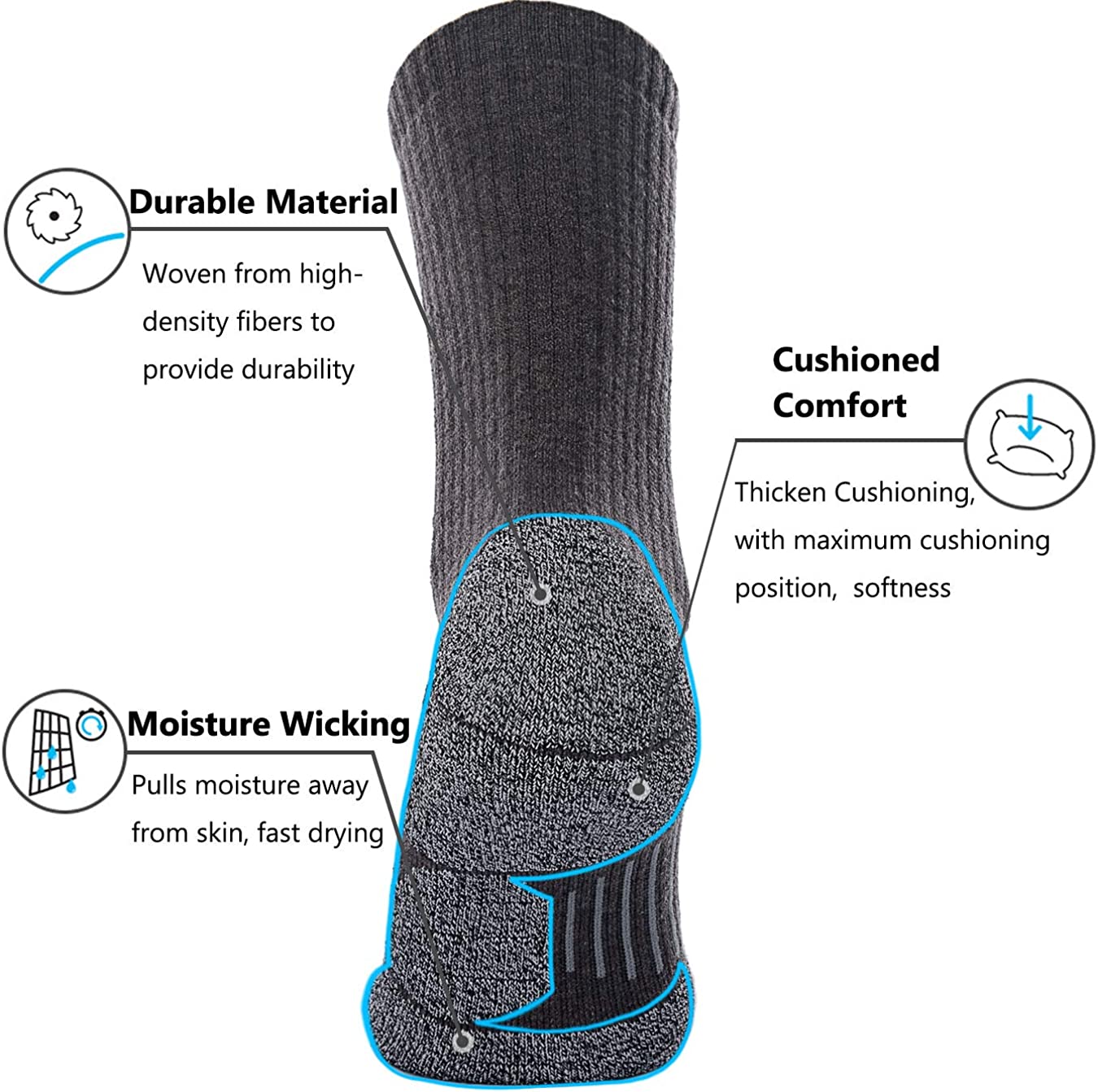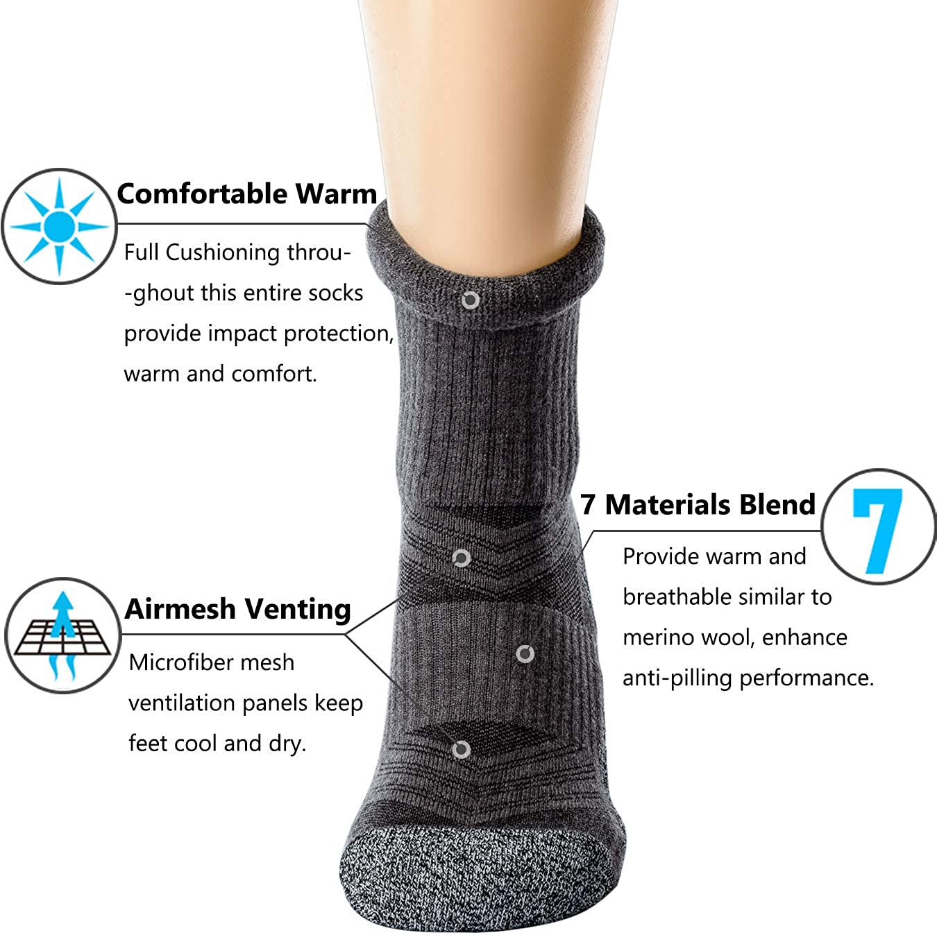 - COMFORTABLE, WARM AND BREATHABLE: Socks are made of 7 kinds of main materials blend, the anti-pilling performance has been enhanced; Full Cushioning throughout this entire socks provide support, warm and comfort without unwanted weight and bulk; The instep mesh zones featured on these socks offer added breathability for all-day wear