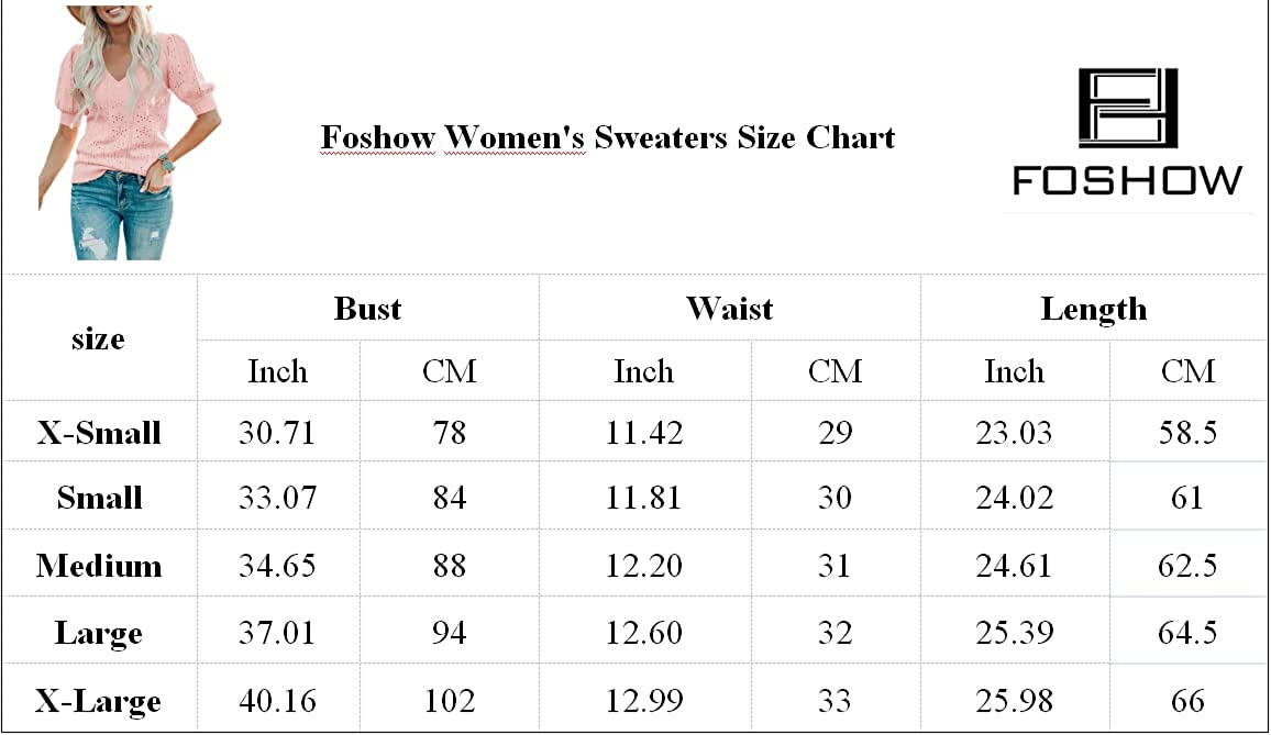 Foshow Womens Puff Short Sleeve Sweaters Tops Spring Soft Crew Neck Dot Pullover Shirt Lightweight Knit Sweater Blouse