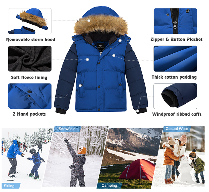 Upgraded Thermal Winter Jacket: (1) Upgraded to a thick soft fleece lining that is thick and smooth for maximum warmth. (2) Upgraded high-quality insulating cotton pads keep your kids warm.
