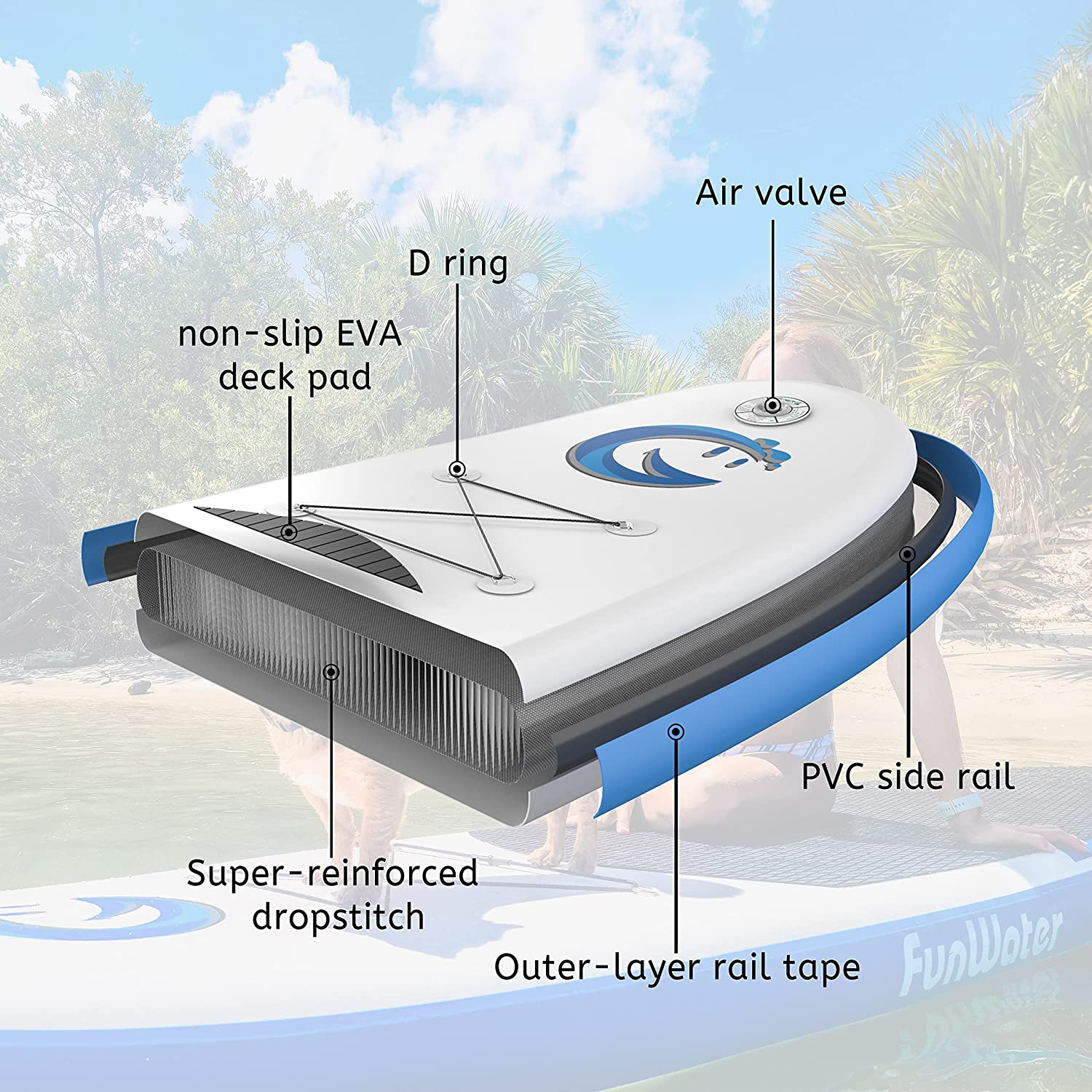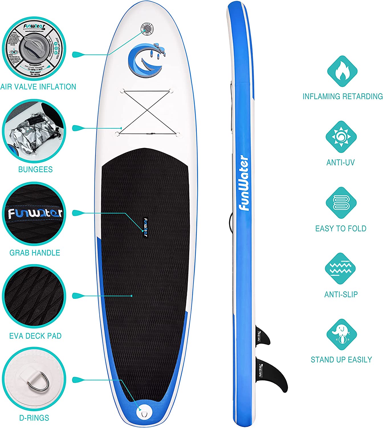 • 【User Scenarios】Funwater paddle boards is your first choice for water sports.Funwater inflatable paddle boards (SUP) are suitable for all skill Levels to enjoy themselves, explore, or adventure in water areas.
