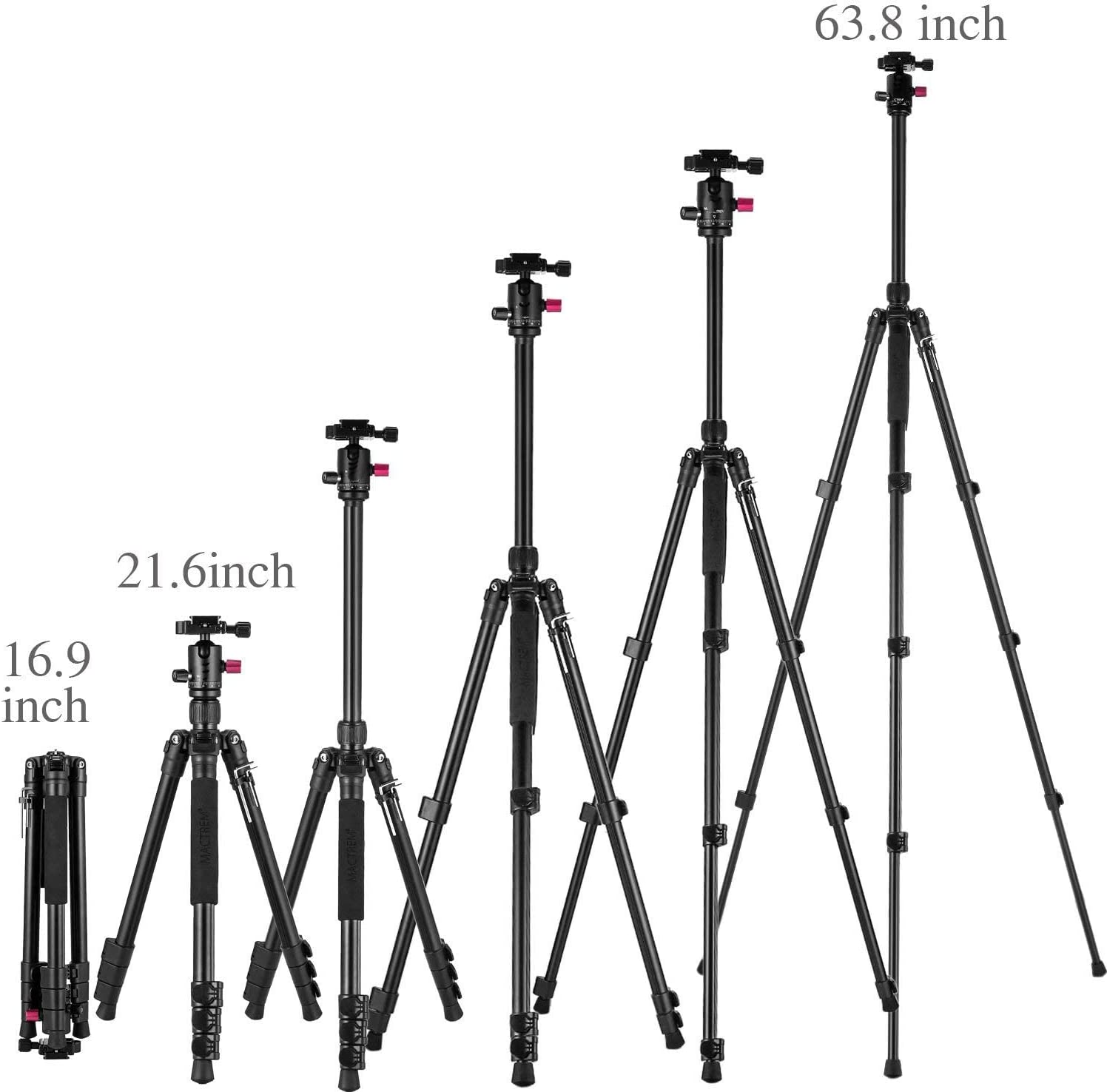 ZIKZOK Professional 62" DSLR Tripod Camera Tripods with Phone Holder for Travel, Super Lightweight and Reliable Stability, Ball Head Tripod Detachable Monopod with Carry Bag (Black)