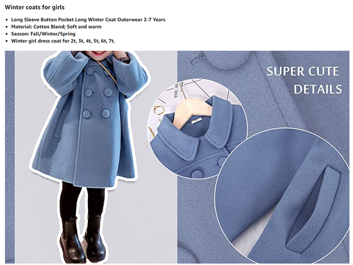 ??【Lightweight, Easy to Care】Cotton Blend, pea coats for toddler girls. Handwash only. makes your kids warm in autumn, spring and warm winter seasons.