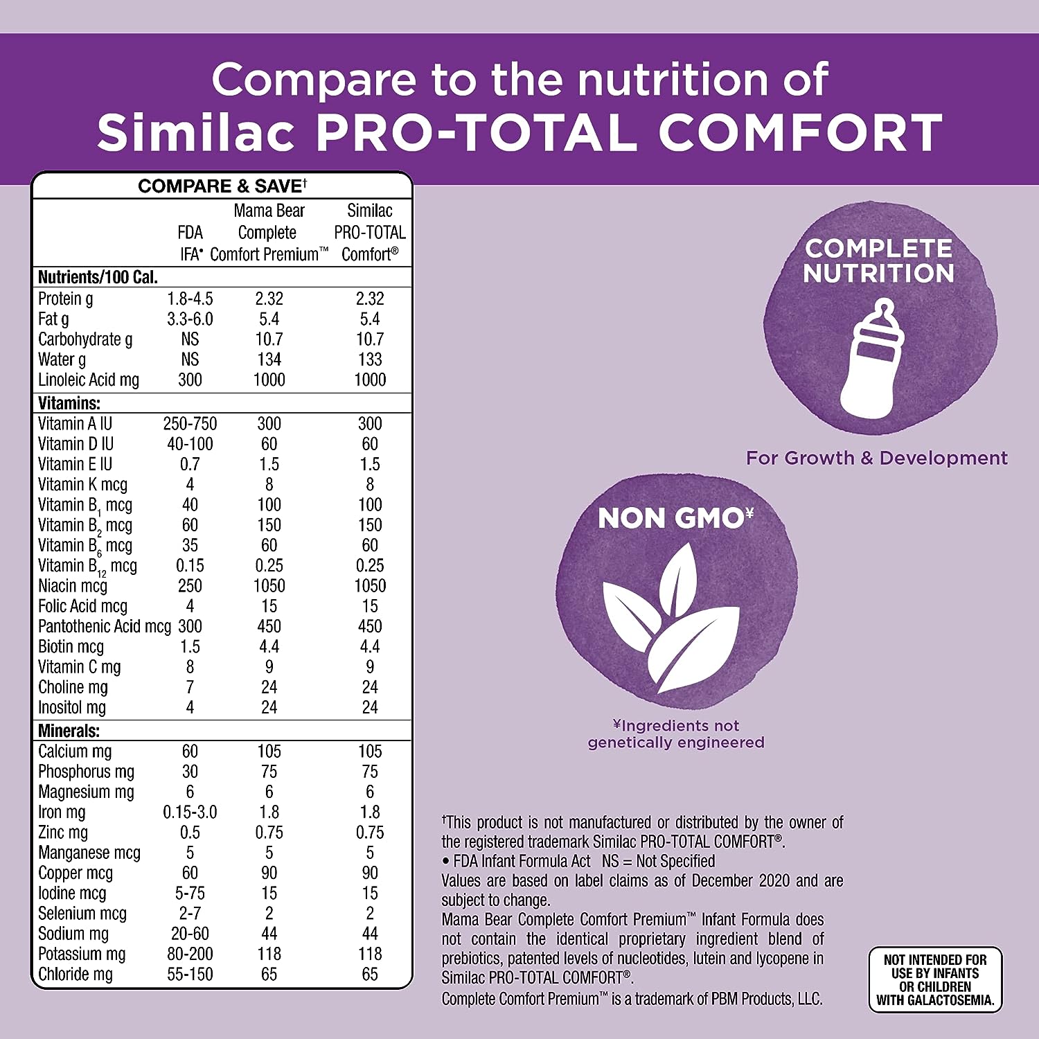 LESS GAS, LESS FUSSY: Babies deserve to be comfortable; gas & crying isn't comfortable. Consider a switch to Mama Bear Complete Comfort Baby Formula with Iron and 2'-FL HMO. Compare to Similac Pro-Total Comfort.*