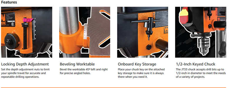 Included Components‎2.3-Amp 8-Inch 5-Speed Benchtop Drill Press