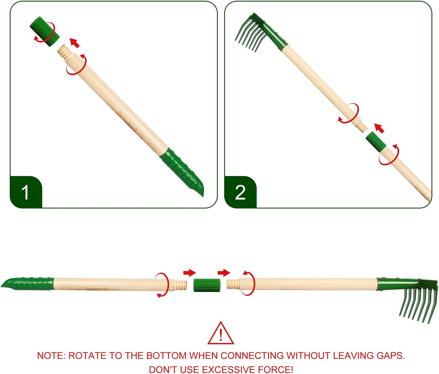 • ERGONOMIC DESIGN FOR CHILDREN: The length of the children's gardening shovel set is 70cm(27.5in), which is a regular size suitable for most children. The handle is equipped with hanging holes and a middle connector that can be detached for easy suspension and storage. Note: the connector needs to rotate to the bottom without leaving gaps during use.