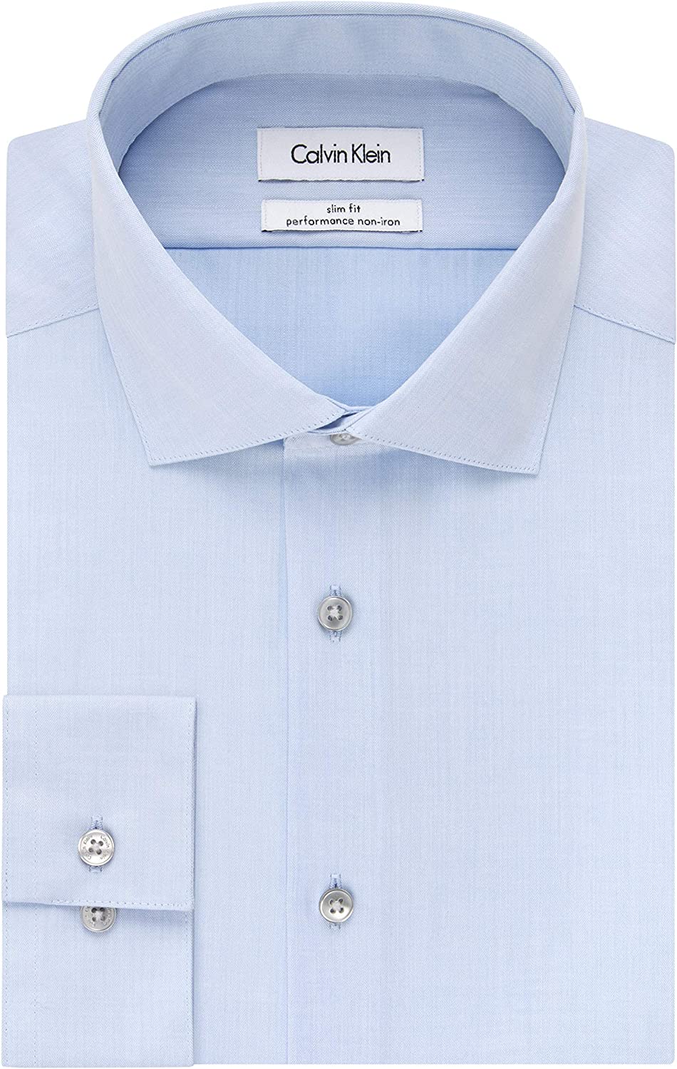 Calvin Klein Men's Dress Shirt Slim Fit Non Iron Herringbone Spread Collar