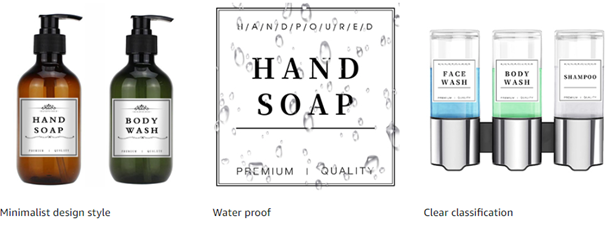 • 3.[Simple and stylish]---These waterproof labels are perfect for tidying up bathroom and kitchen soap dispensers It can make messy sanitary products tidy and orderly. It will make your life more organized and pleasing to the eye. I guess you have no reason to refuse it.