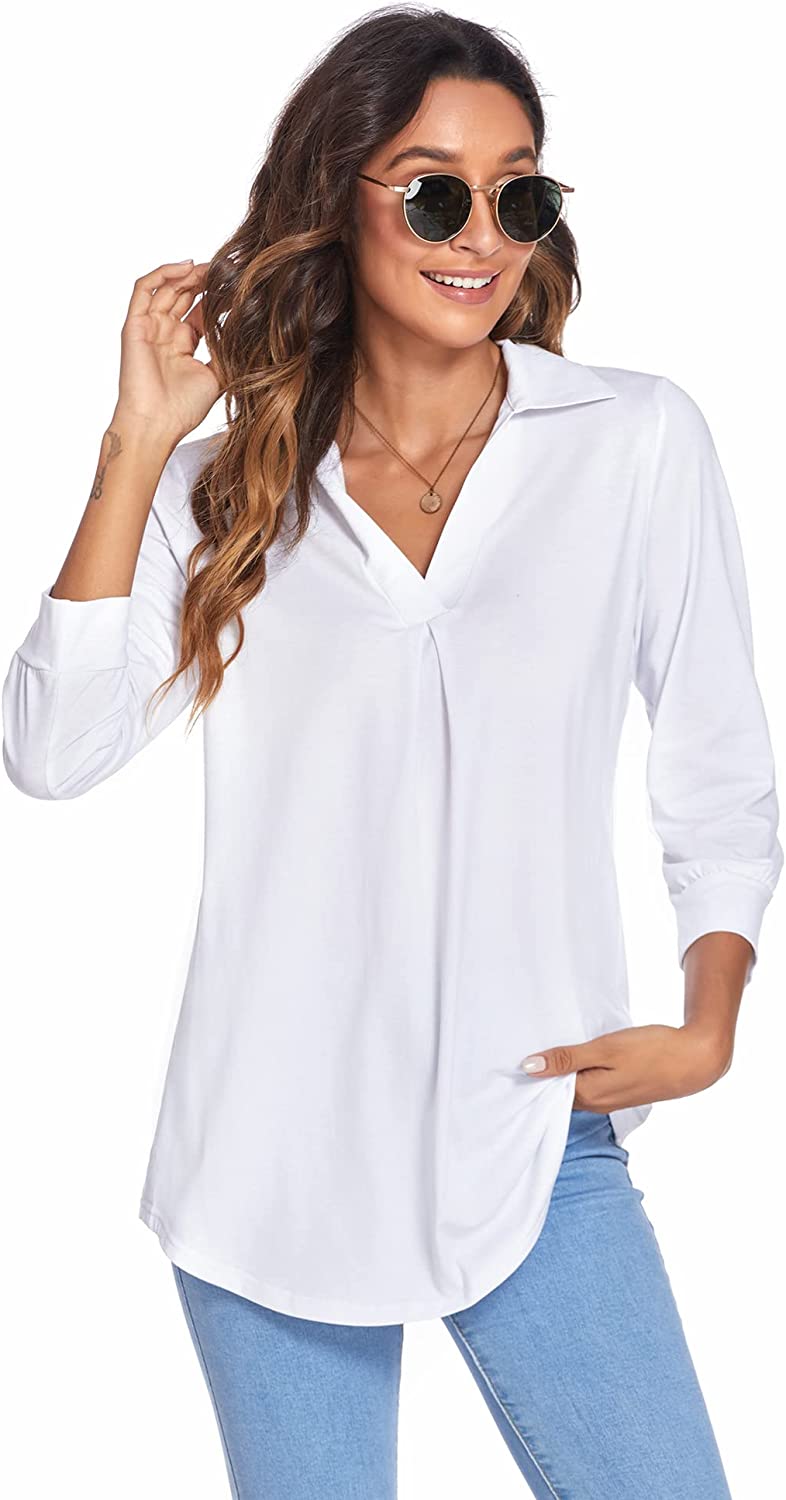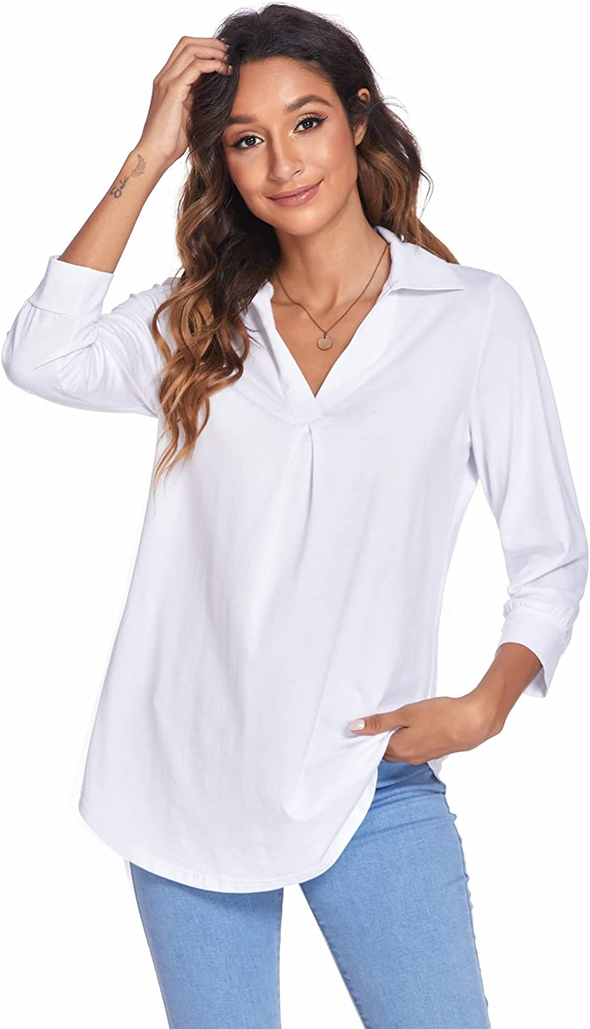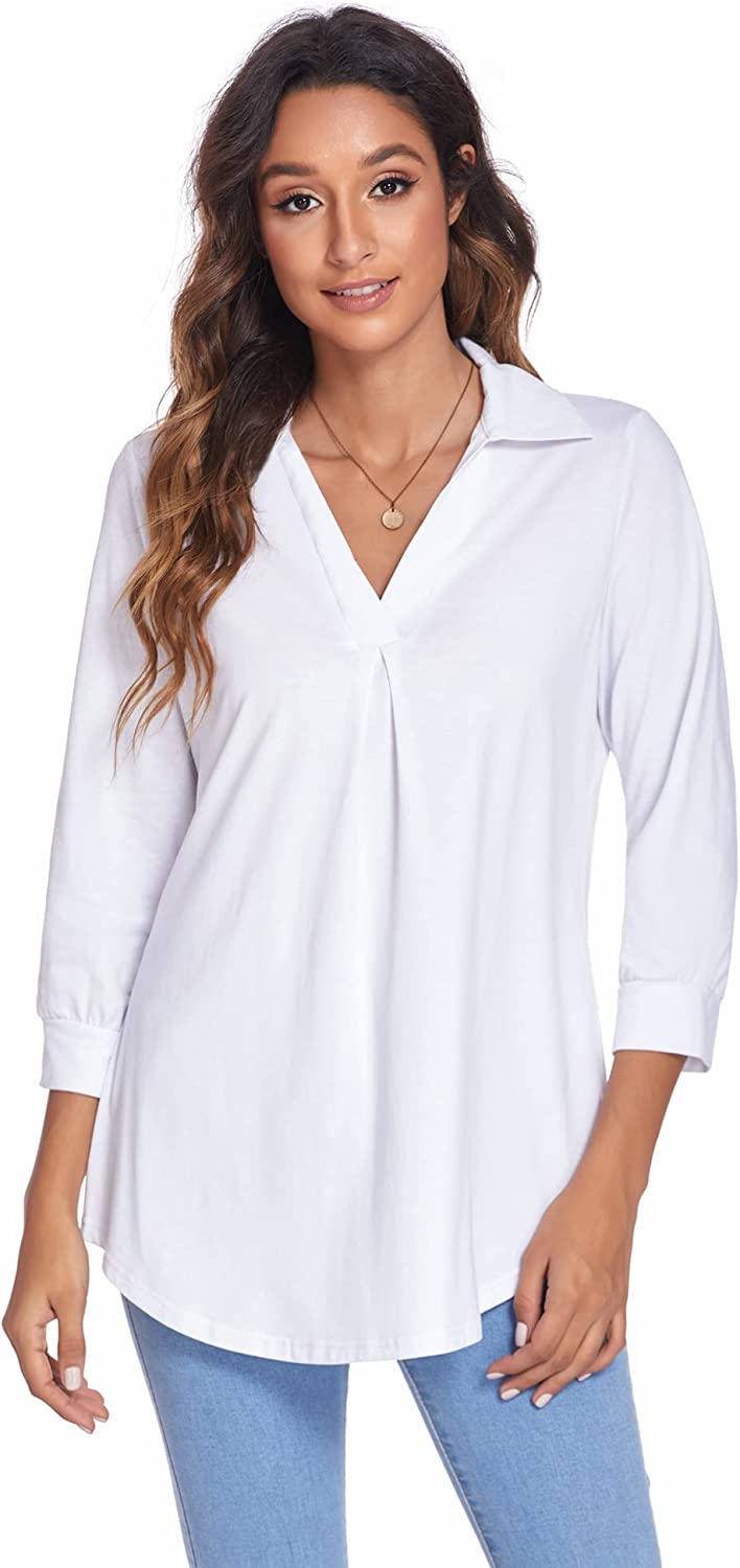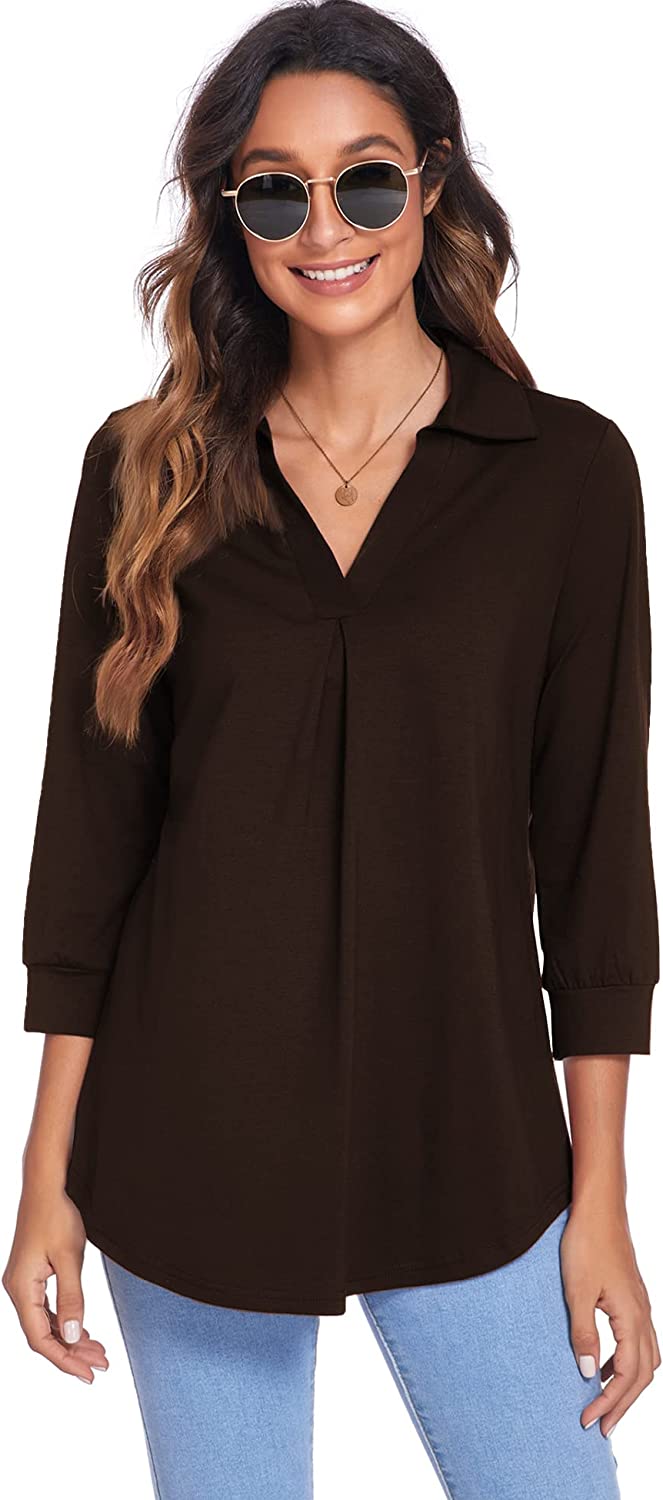 • Features: Womens tops dressy casual, blouses for women, v neck collared shirts for women, 3/4 sleeve tops for women, cute pleated in front, curved hem, loose fit style, trendy, classy, basic, womens tunics to wear with leggings.