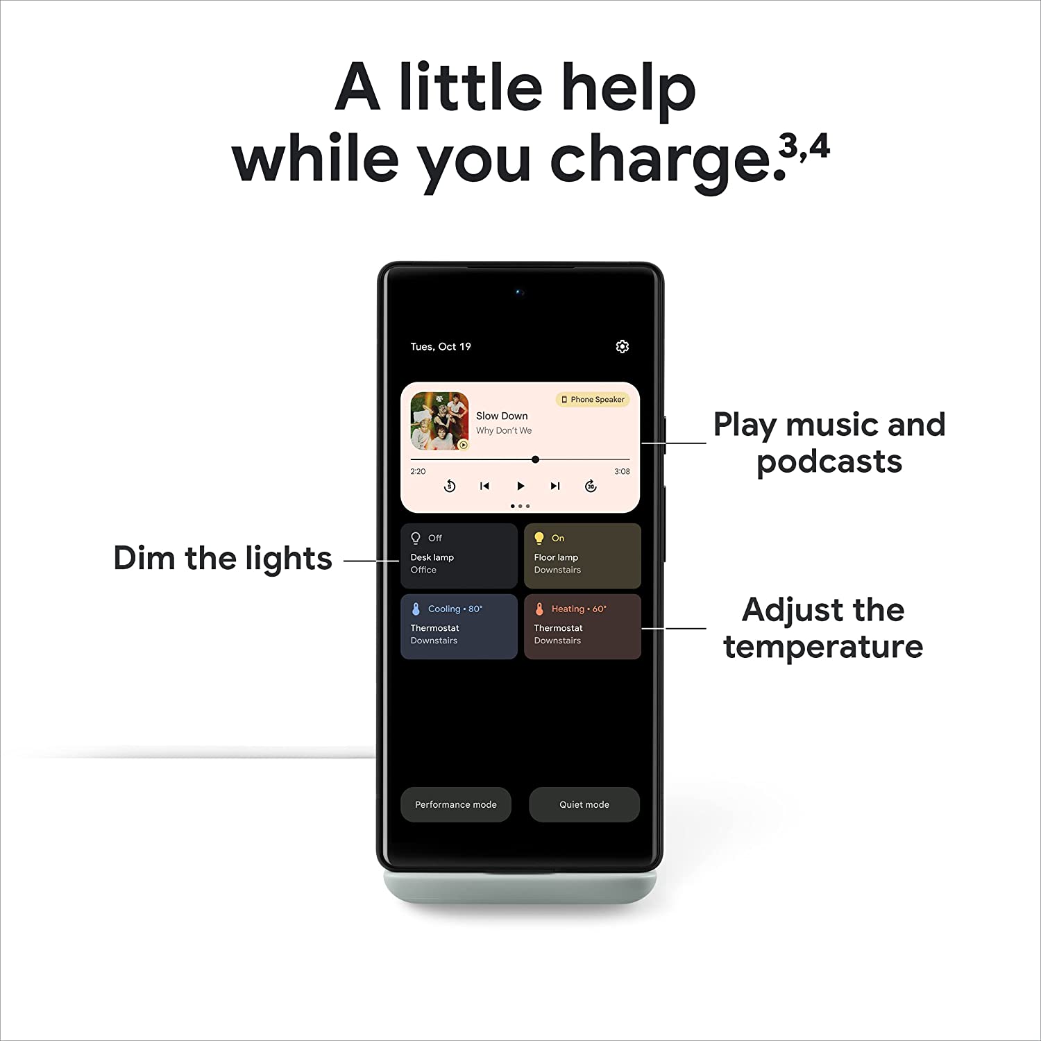 Meet the second-gen Pixel Stand from Google. It’s a superfast wireless phone charger with up to 23W of power.[2] It works with compatible Pixel phones, Pixel Buds, and Qi-certified mobile devices.[1] Just set your phone down for a charge, even with a case.[3] [1]Excluding Pixel Buds A-series. Compatible with Pixel phones and wireless charging capabilities and many Qi-certified devices. See g.co/pixelstand/req for more details. Compatible devices sold separately. [2]Up to 23W with compatible Pixel phones and up to 15W with Qi EPP certified devices. See g.co/pixelstand/req for more details. [3]Requires compatible Pixel phone (sold separately). See g.co/pixelstand/req for details.