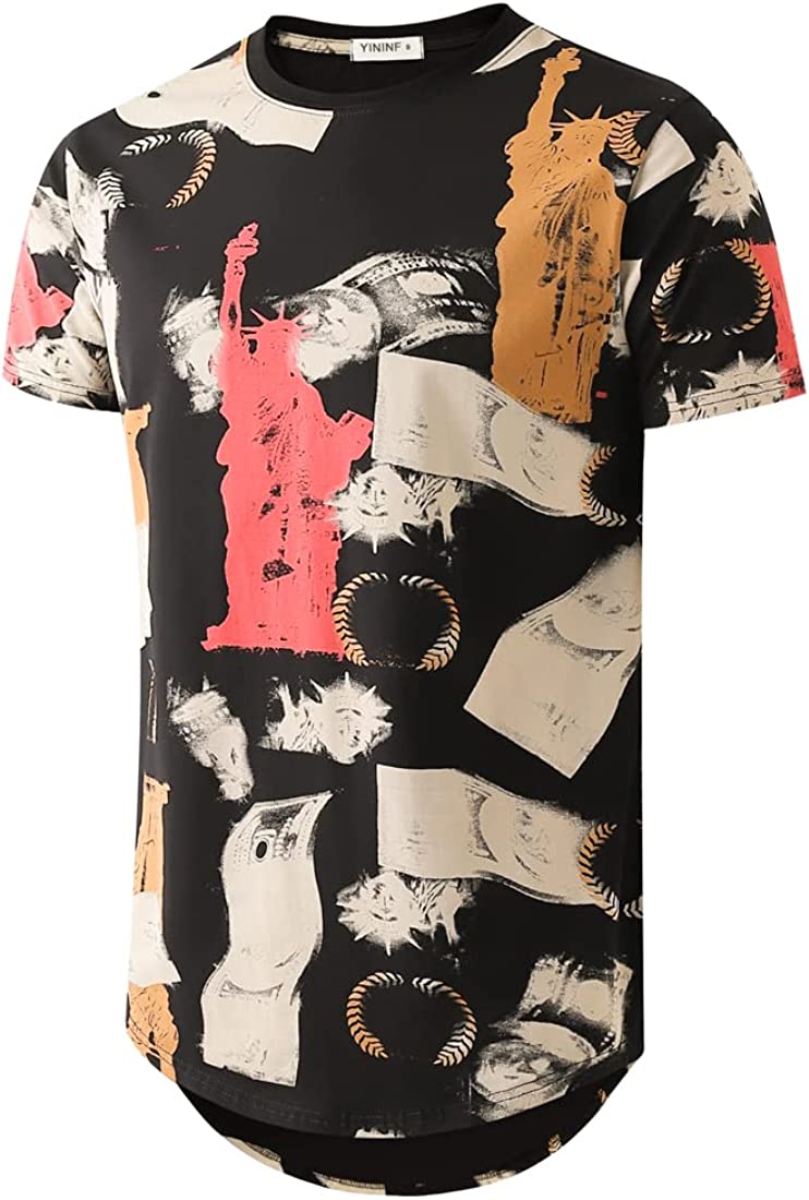 YININF Mens Hipster Hip Hop All Over Graphic Longline T-Shirt