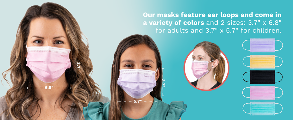 Protective 3-Layer Box of 50 Adult Disposable Face Mask with Ear Loops, Made in the USA, DemeTECH