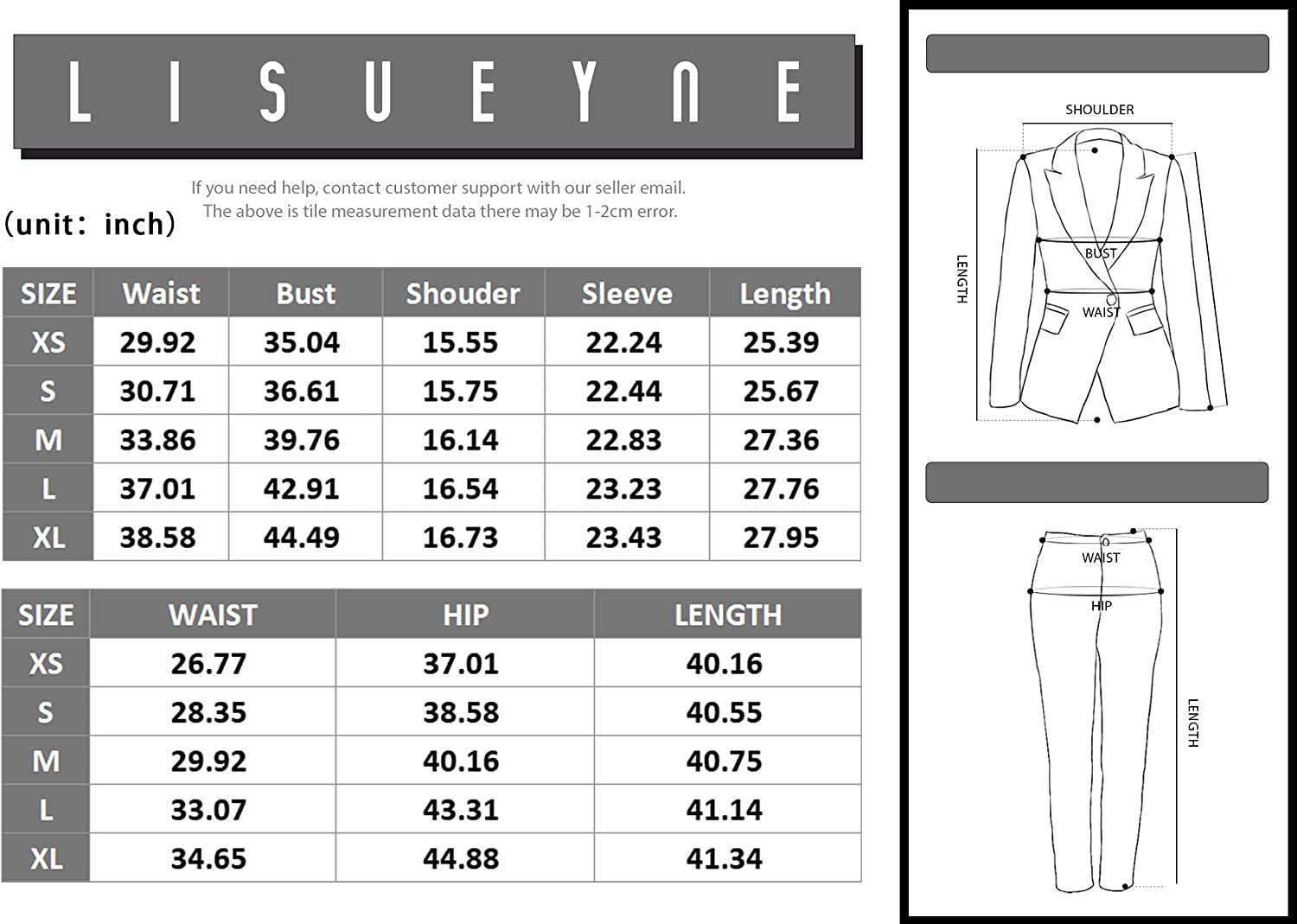 LISUEYNE Women’s Two Pieces Blazer Office Lady Suit Set Work Blazer Jacket and Pant