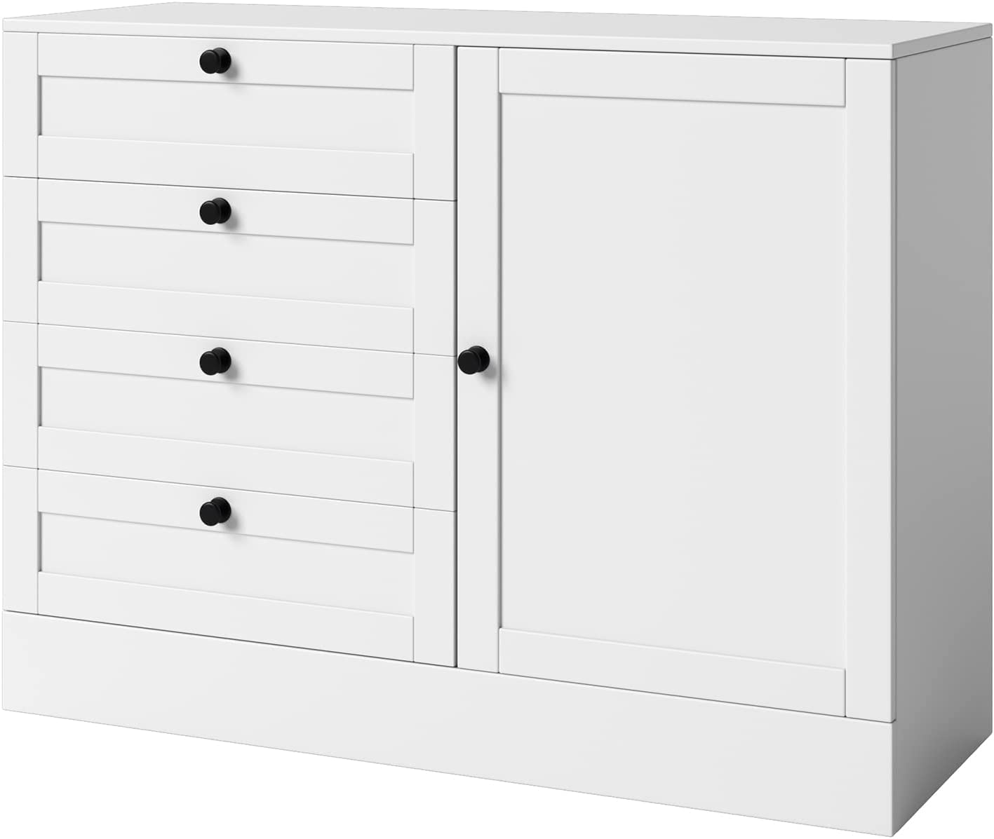 HOSTACK Storage Cabinet, Modern Chest of Drawers, 4 Drawer Dresser & Clothes Organizers for Bedroom, Large Buffet Sideboard, Floor Cabinet for Living Room, Bedroom, Closet, Kitchen, White