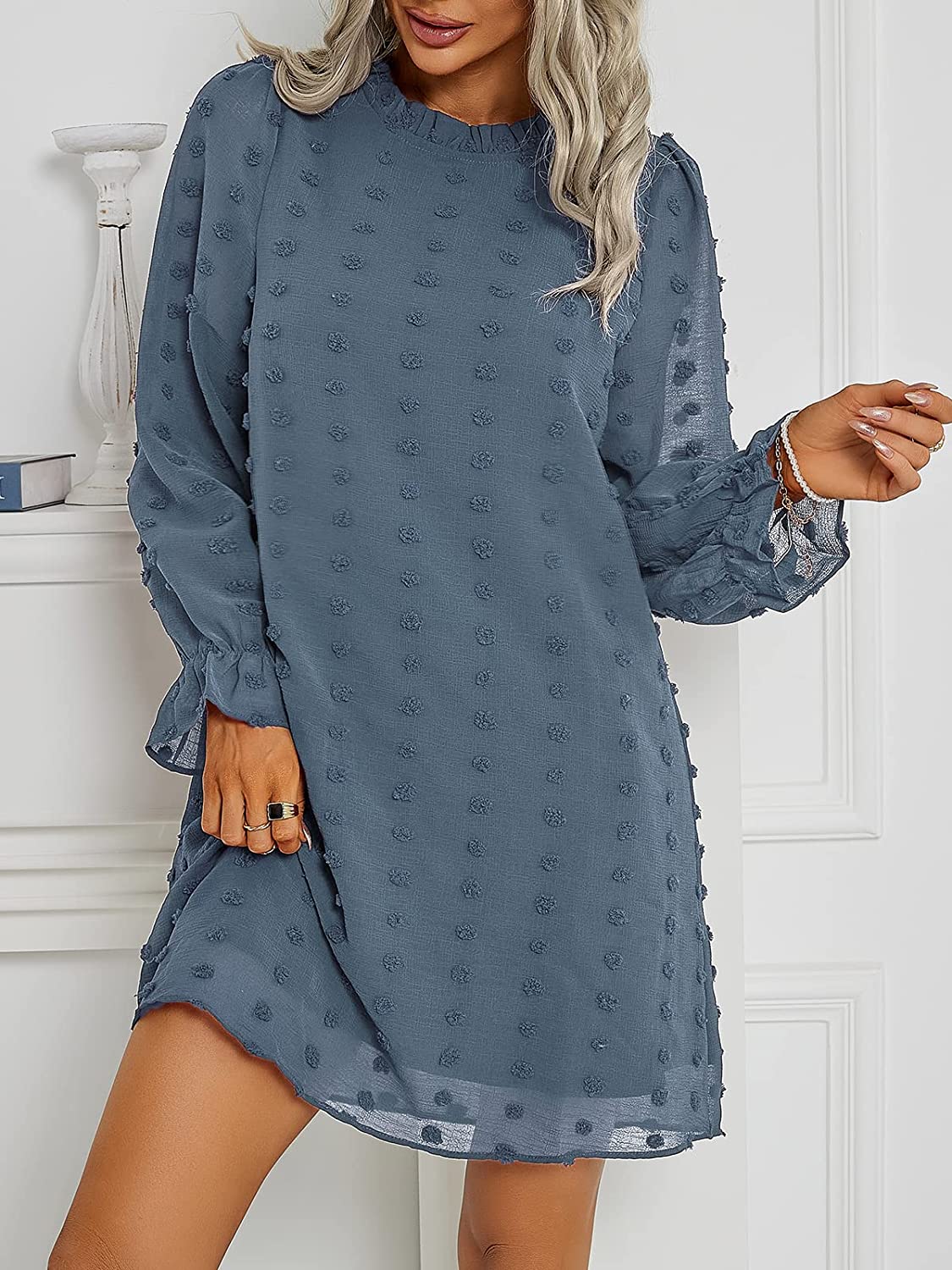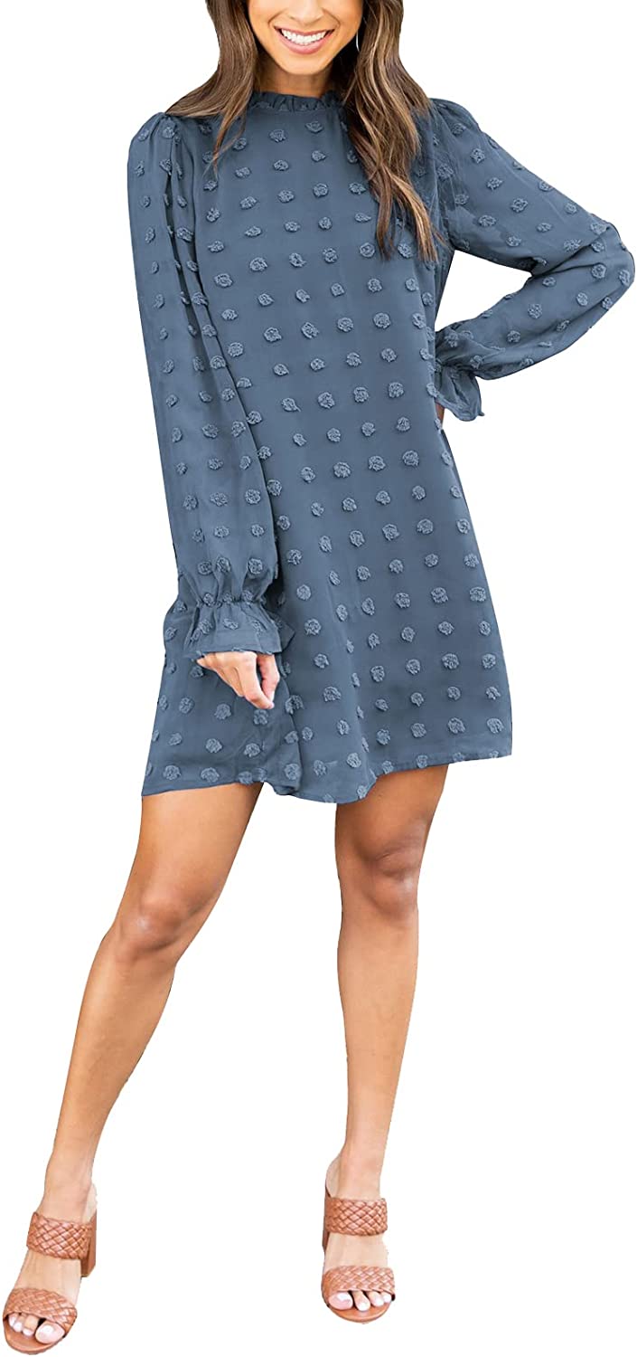 Adibosy Women's Dress Long Sleeve Swiss Dot Mini Dresses Round Neck Loose Chiffon Casual Short Dress