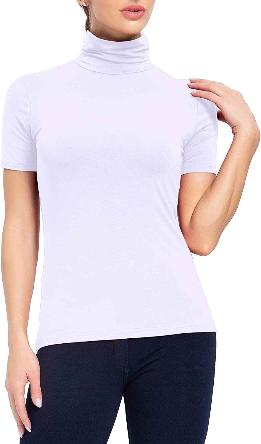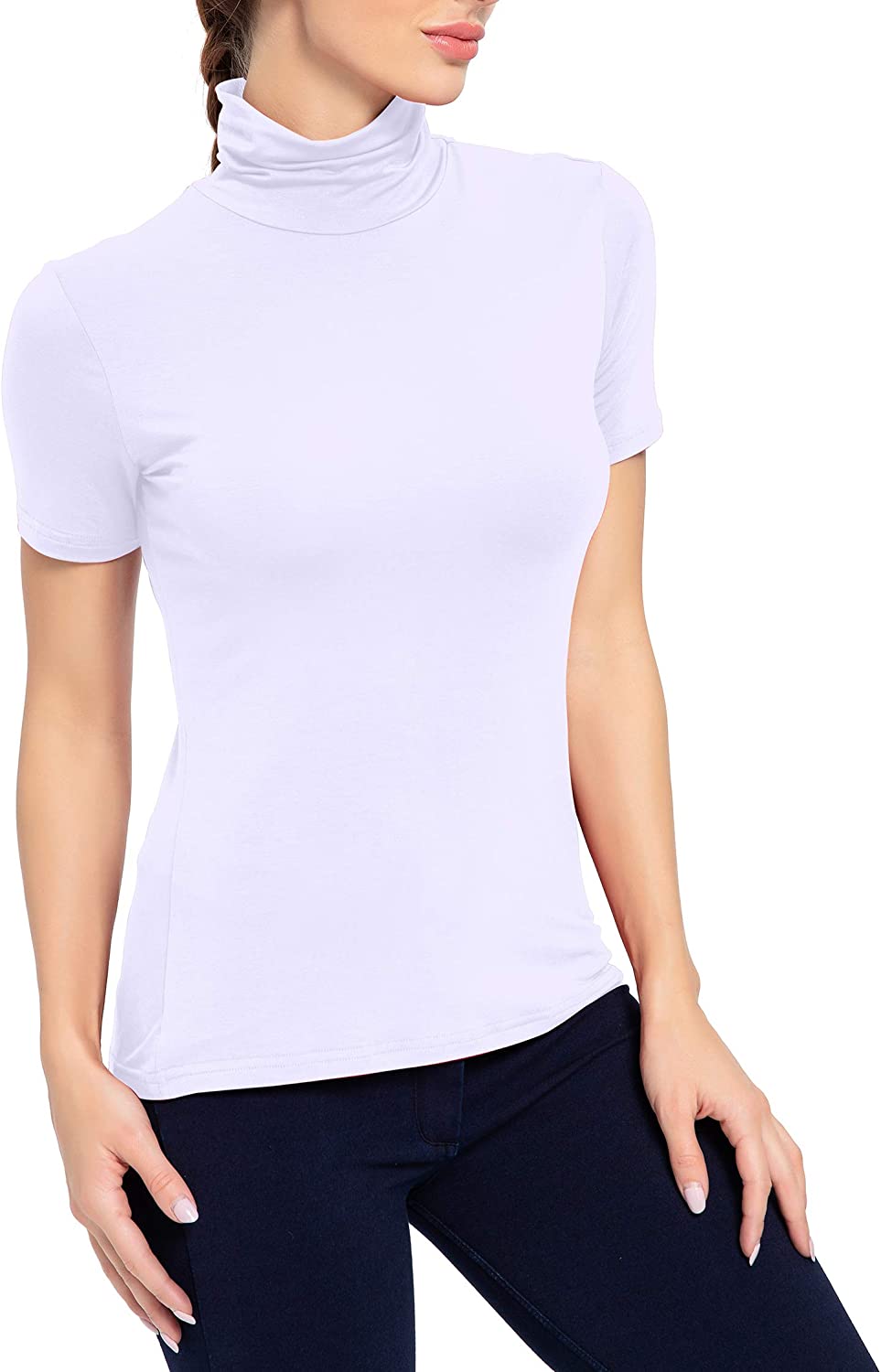 AUHEGN Women's Mock Turtleneck Top Short Sleeve Lightweight Active T-Shirt