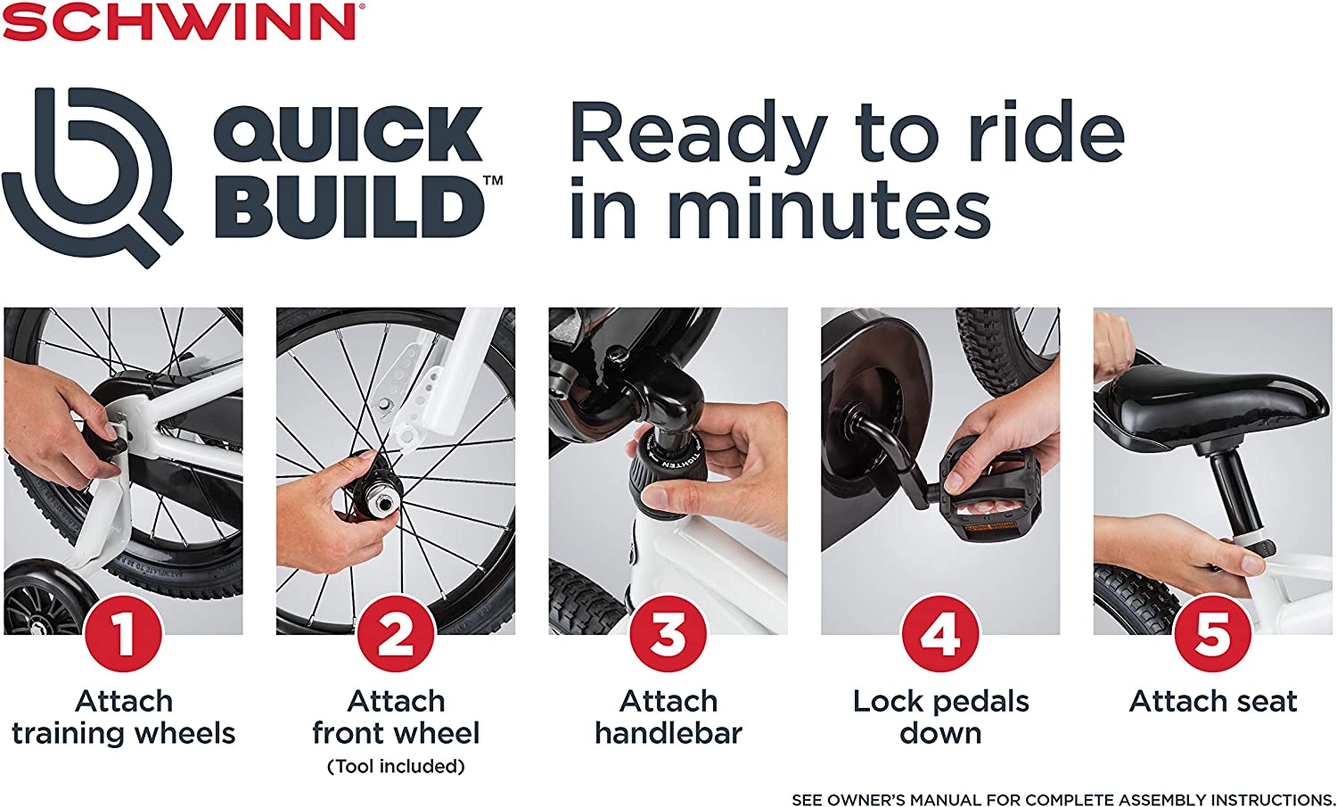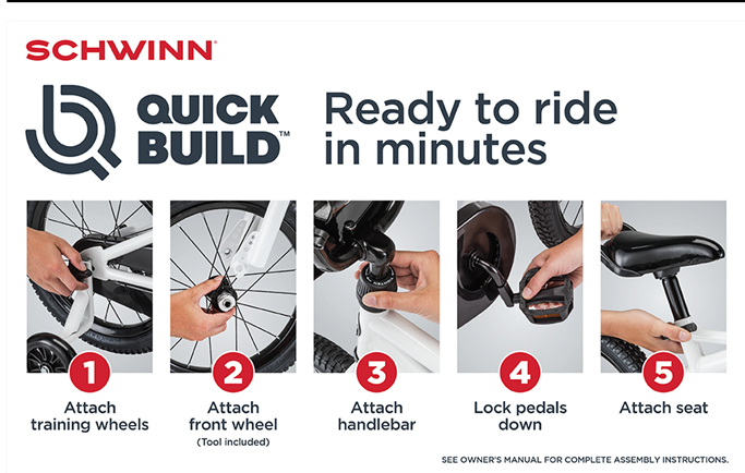 • Quick Build tool-free assembly. Includes removable training wheels for learning riders