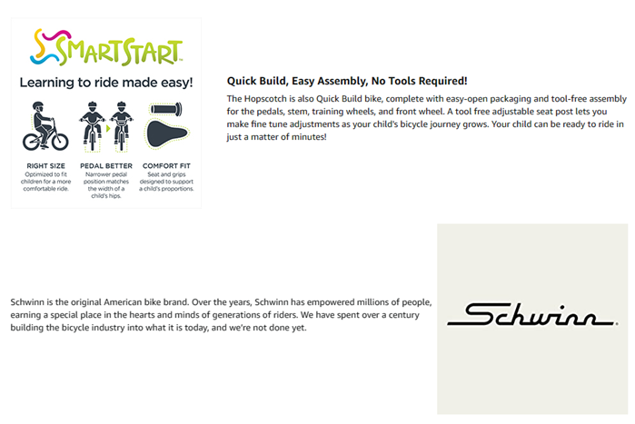 • Schwinn Easy Assembly 12-Inch SmartStart steel bike frame is great for kids learning to ride. Fits ages 2 to 4, or 28” to 38”