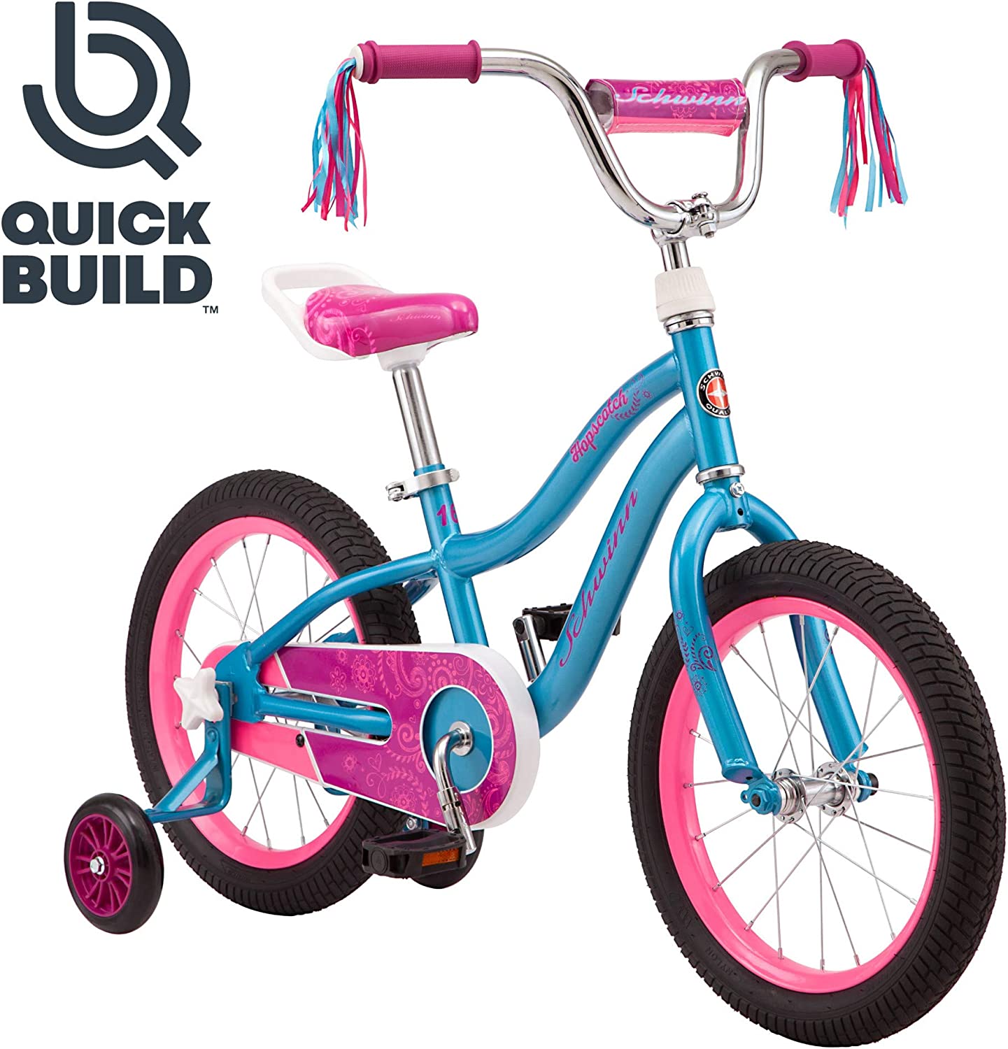 Schwinn Hopscotch & Toggle Kids Bike, Boys and Girls Bicycle, 12-16-Inch Wheels, Removable Training Wheels for 2-4 Year Olds, Handle Handle for Assitance, Easy Tool-Free Assembly