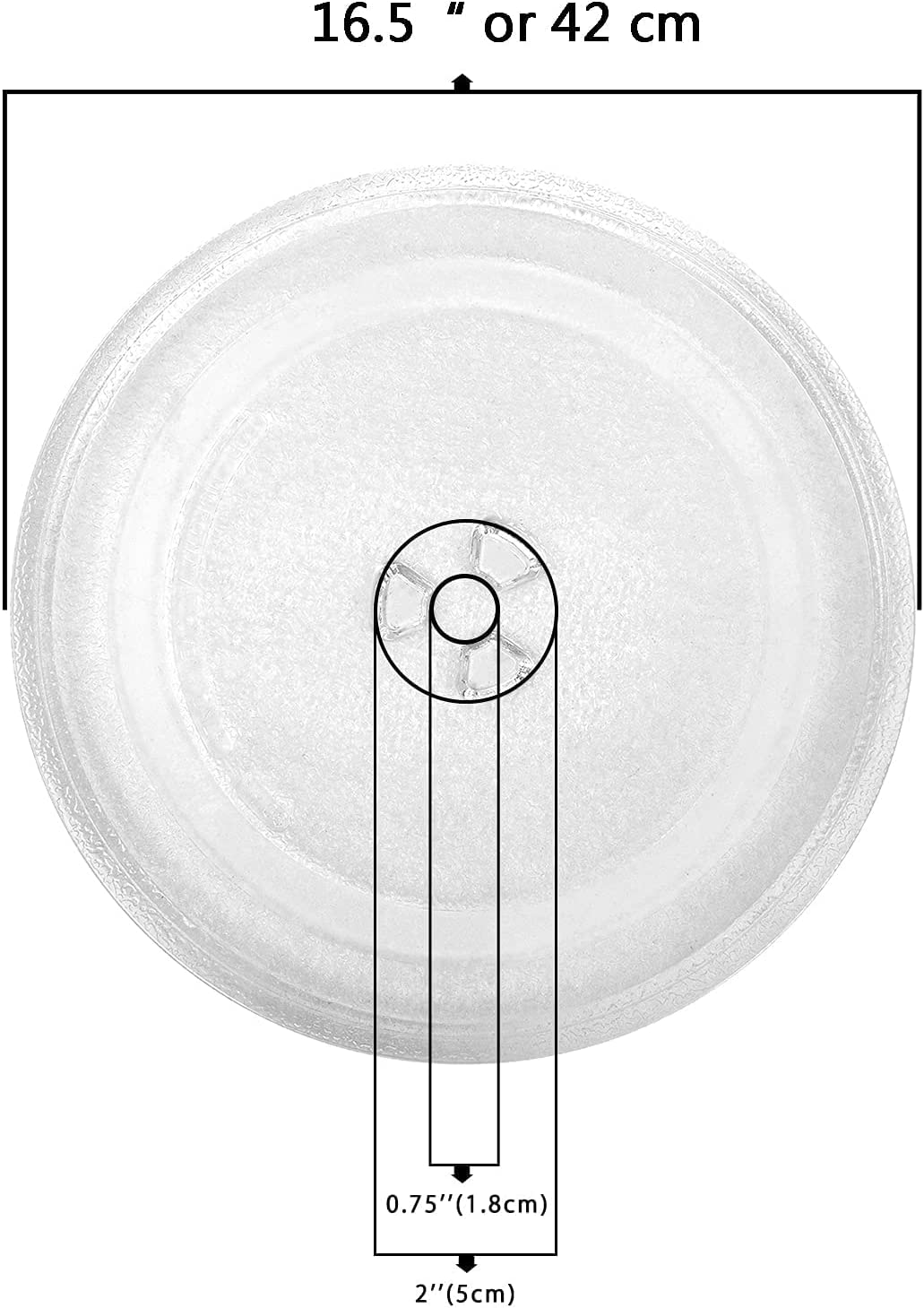 • ✌【Accurate installation】Please check the center piece of the turntable before ordering to make sure it has three notches aligned with the middle of the plate. Measure the inside of the microwave oven to make sure it fits the 16-1/2" glass plate.