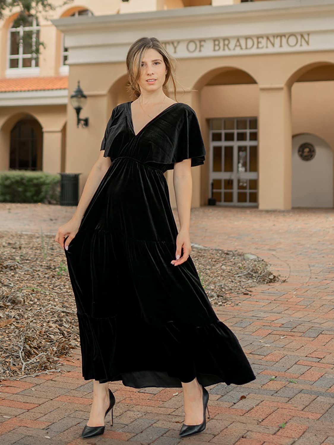 • ?Style -Maxi Dresses for women Summer, Casual Summer Beach Boho Long Dresses,Soft stretchy high waist Dress,Flowy Long Dress,Elegant V neck Empire Waist pleated Party Dress,Maternity maxi dress.Suitable for Spring,Summer and autumn easy to carry out for many occasions-beach/casual/party/evening/wedding/home/Holiday ect