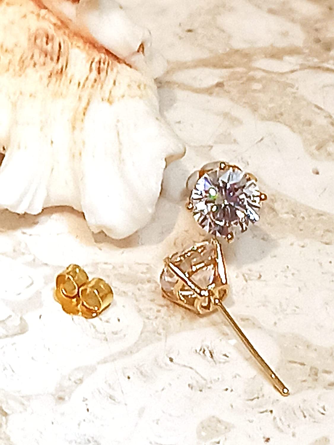 3.5ct Luxury DIAMOND Earrings Necklace SET: SOLID 18K GOLD Solitaire Diamond Necklace & Solitaire Diamond Earring studs Women VALENTINE'S day Gift Ideas Solitaire Jewelry SET 18" Solid 18k GOLD chain