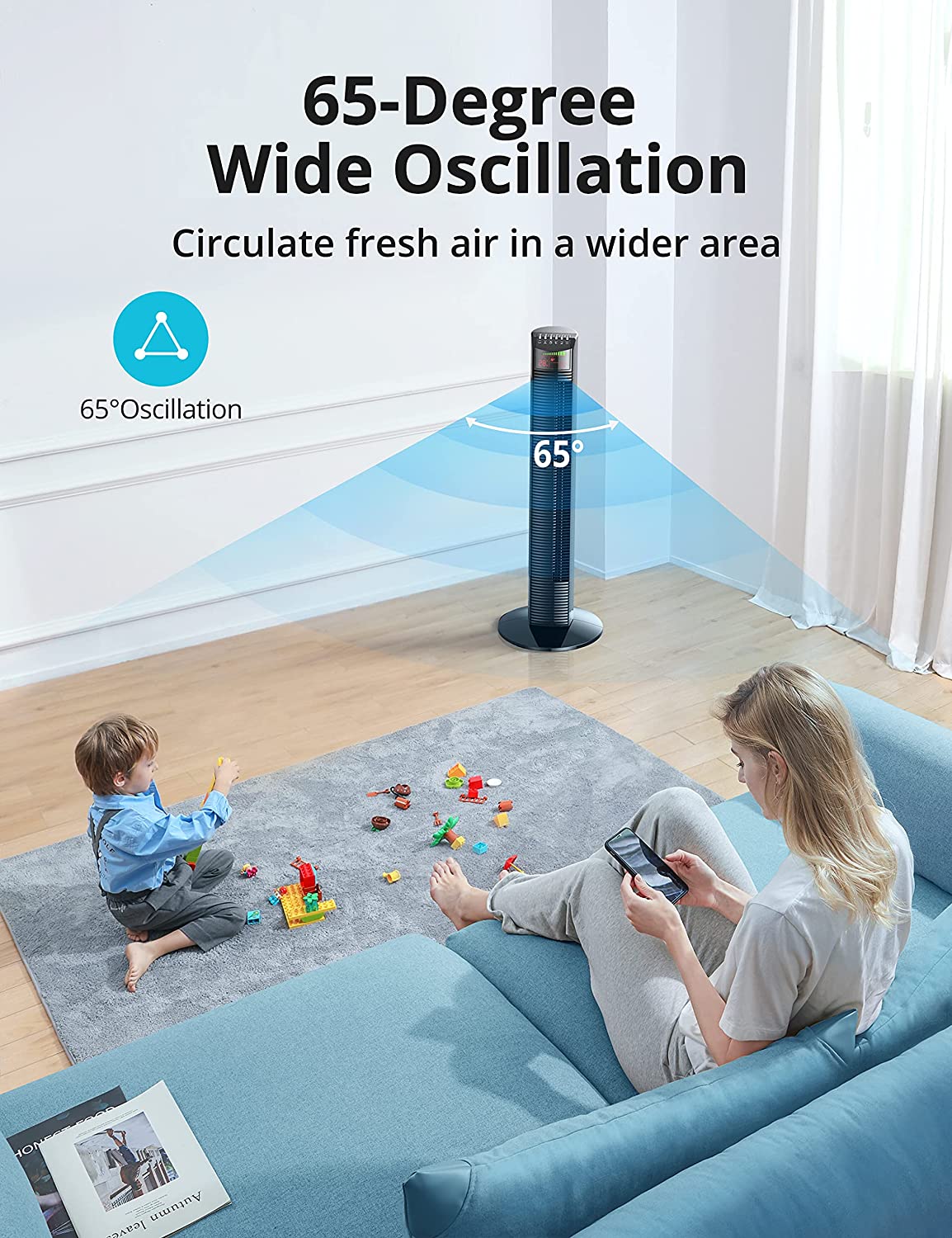 - Safe & Reliable: With ETL certification, the standing fan is safe for you and your family to use as the narrow fence protects children and pets, and the oscillating tower fan automatically turns off for your health when the ambient temperature is lower than 24°C / 75.2°F