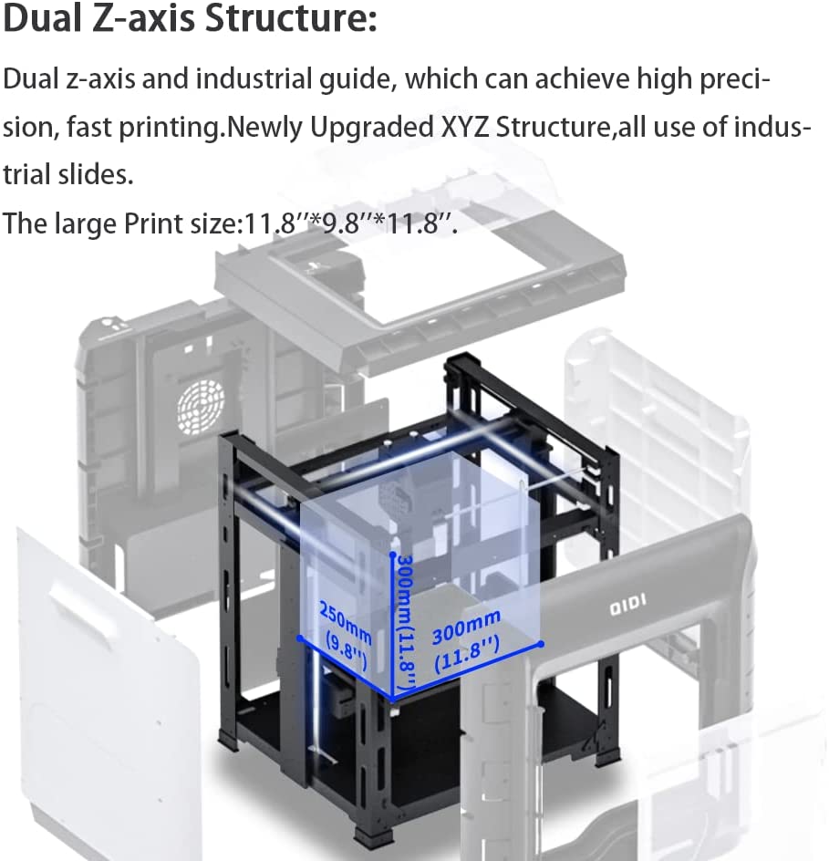 • 【Precision Manufacturing Process】QIDI TECH using industrial-grade manufacturing, dual z-axis and industrial guide, can achieve high precision, fast printing. Upgrading the XYZ structure, all use of industrial slides. PEI printing plate, solve printing models warp and other problems.The 3d printer’s structure is developed for the effective and accurate printing of carbon fiber.Meanwile, printing other common filaments, the speed can be increased to 120cc per hour.