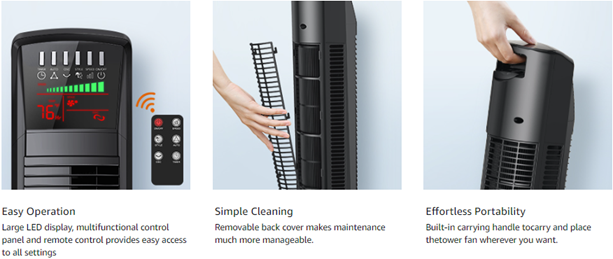 • How many times have you wished you could turn on or off your fan in the middle of the night without having to leave your bed? Now you can! Activate auto mode for the tower fan to run while the ambient temp is over 79°F and auto shuts off when less than 75°F, you’ll always inhabit a pleasant and healthy space.