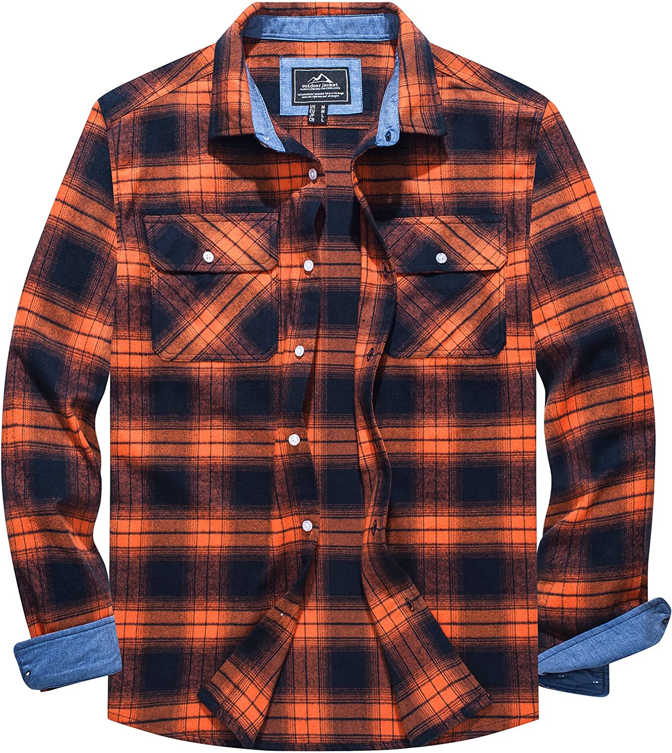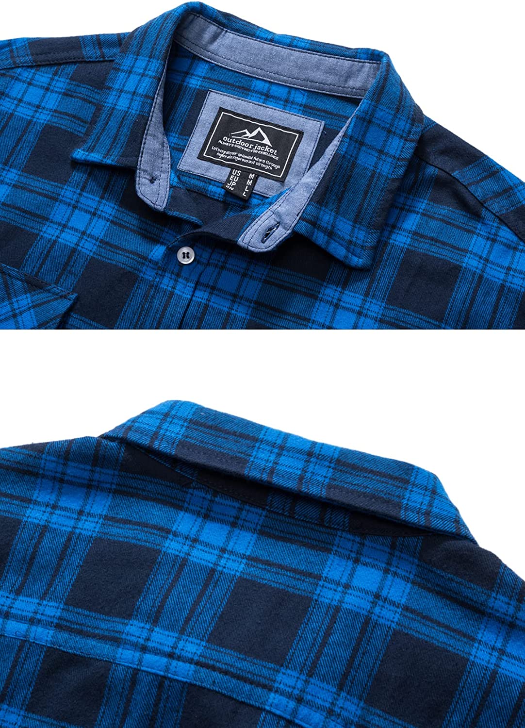 Feature: 2 chest pockets to enough for storing essentials; Rounded hem; Double-button barrel cuffs; Cotton flannel fabric long-lasting wear.
