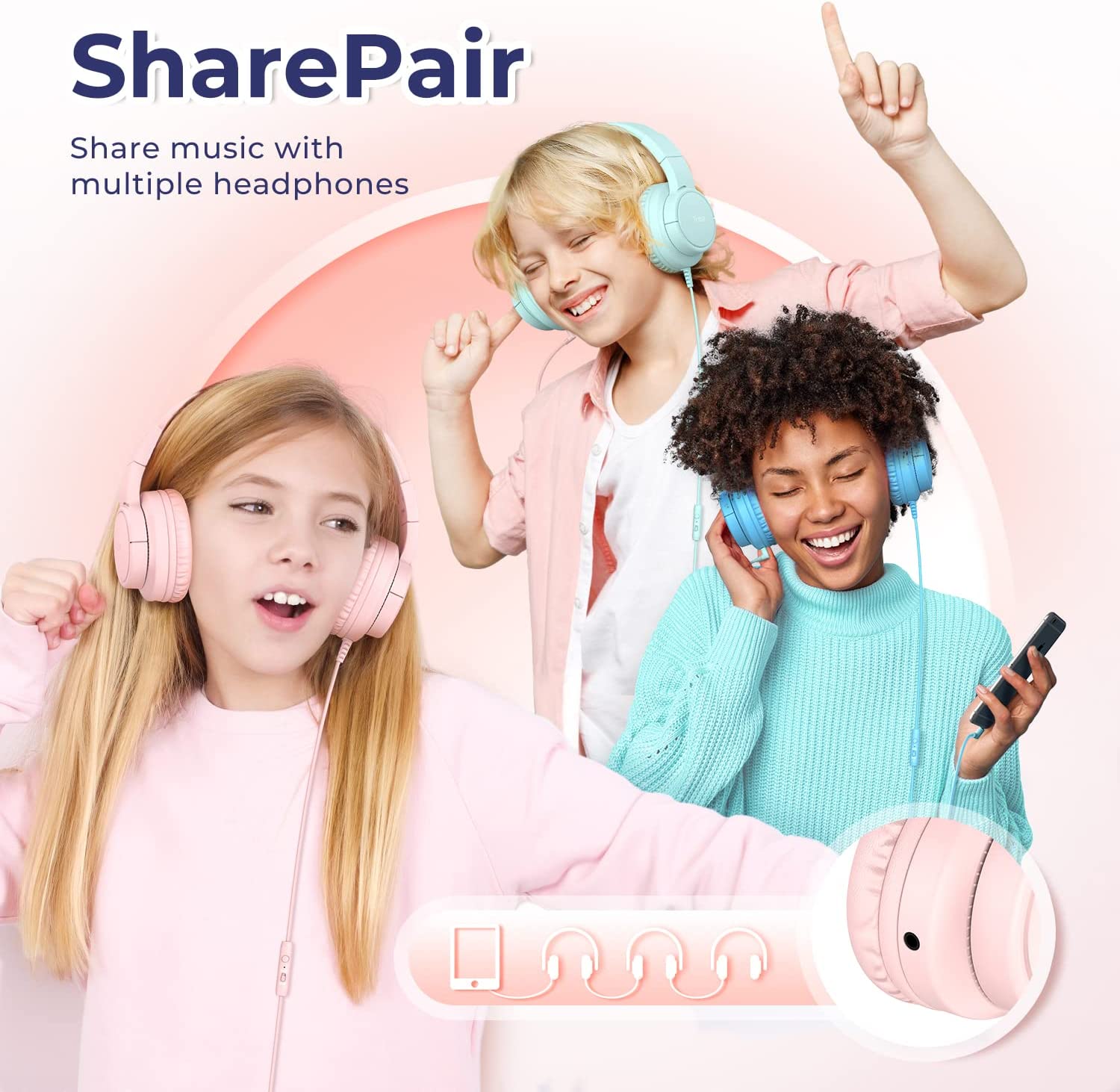 Tribit Kids Headphones Wired with Microphone, Starlet01 Safe Sound Tech 85/94dBA Volume Limited, SharePair, HiFi Stereo Foldable Over-Ear Headphones for Kids for School/Travel/iPad/Kindle/Switch