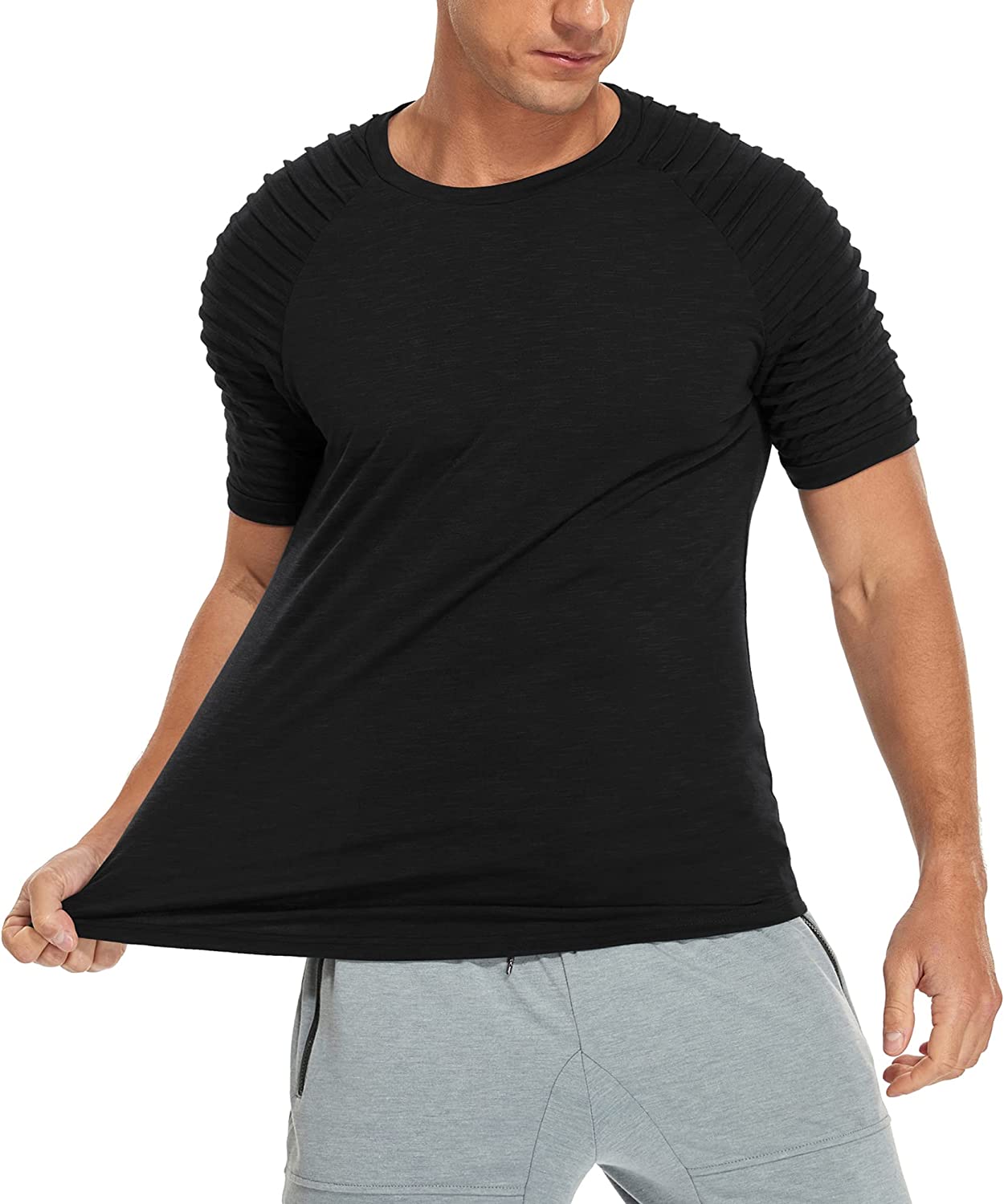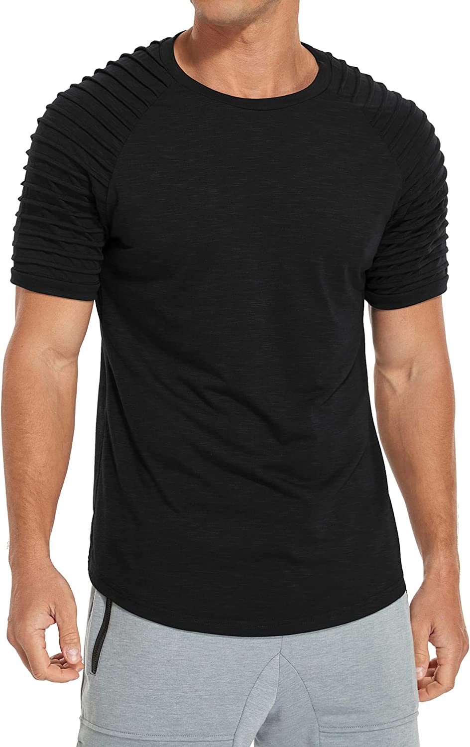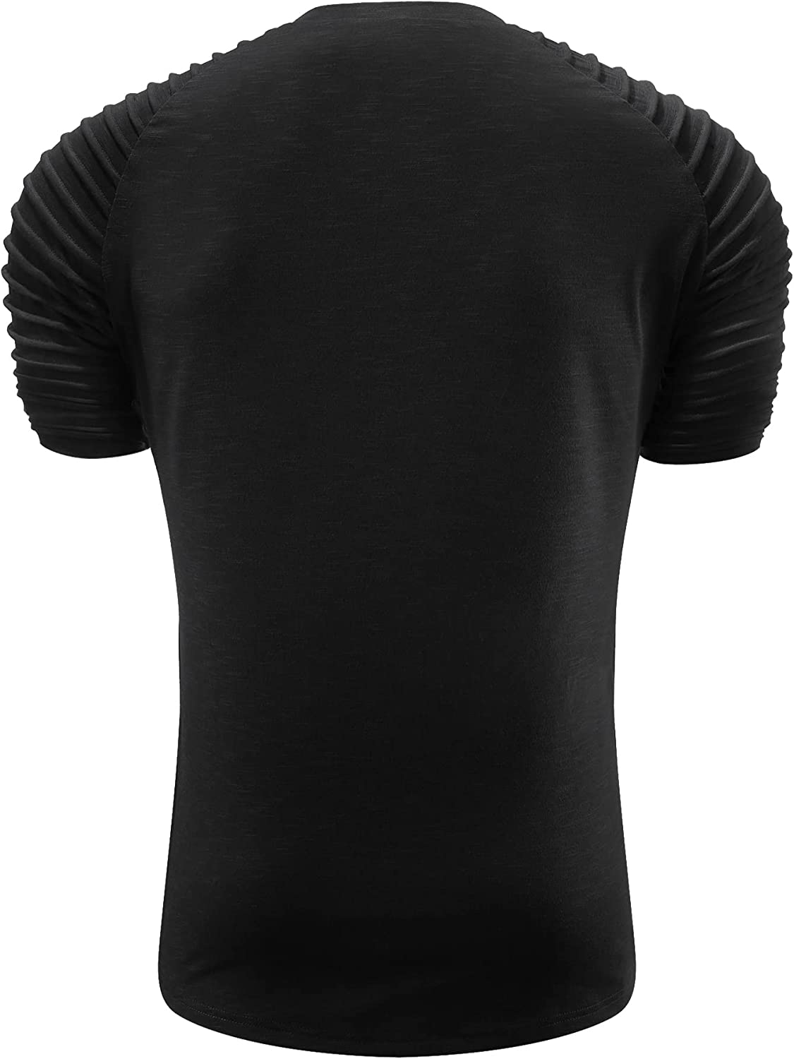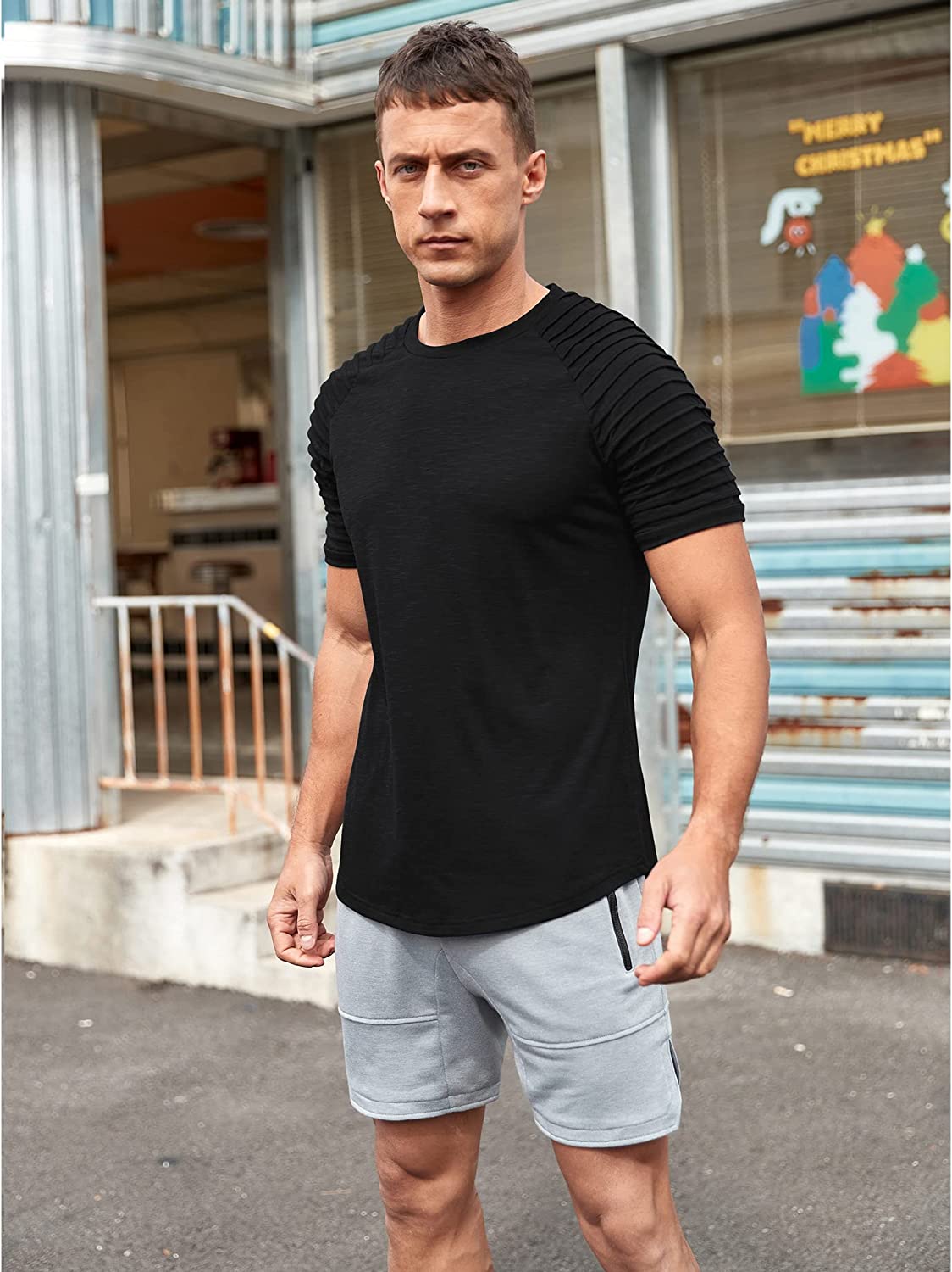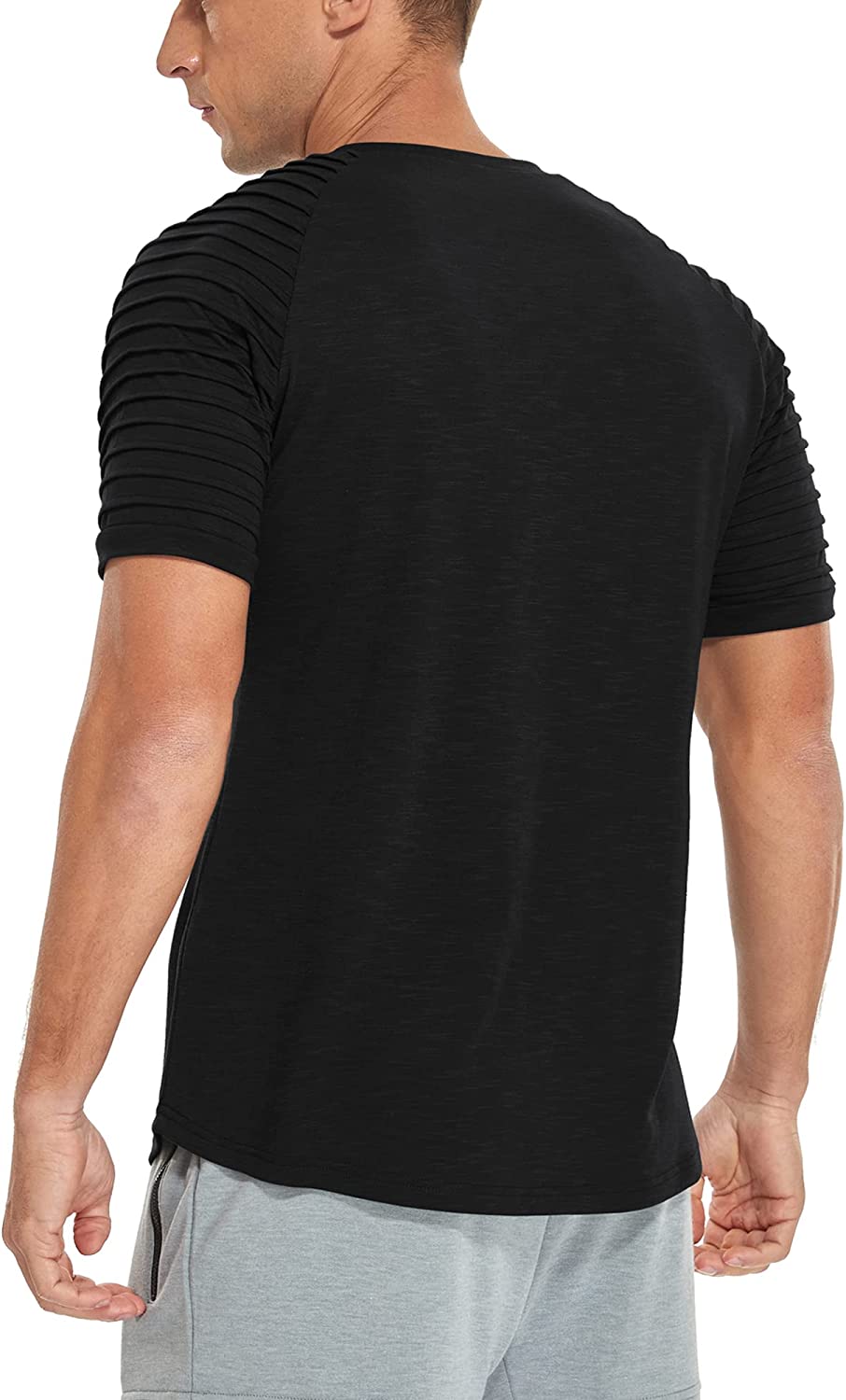 Men's Muscle Workout T-Shirt Pleated Raglan Short Sleeve Gym Athletic  Fashion Tee Top