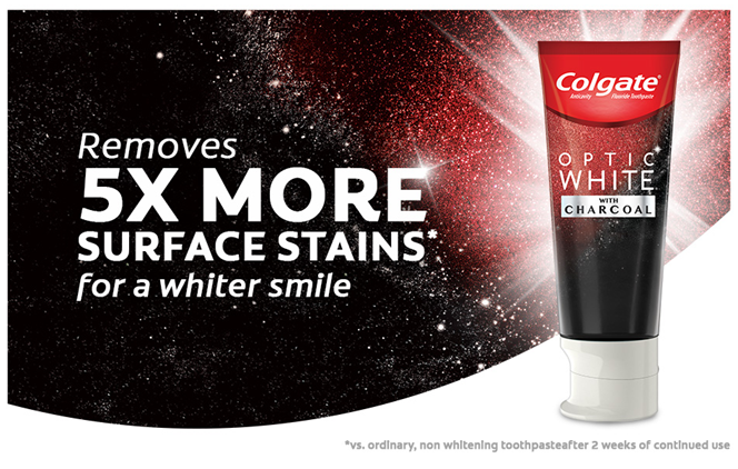 • Double toothpaste pack of Optic White with Charcoal, a stain removal toothpaste that fights stains and helps prevent new stains from forming
