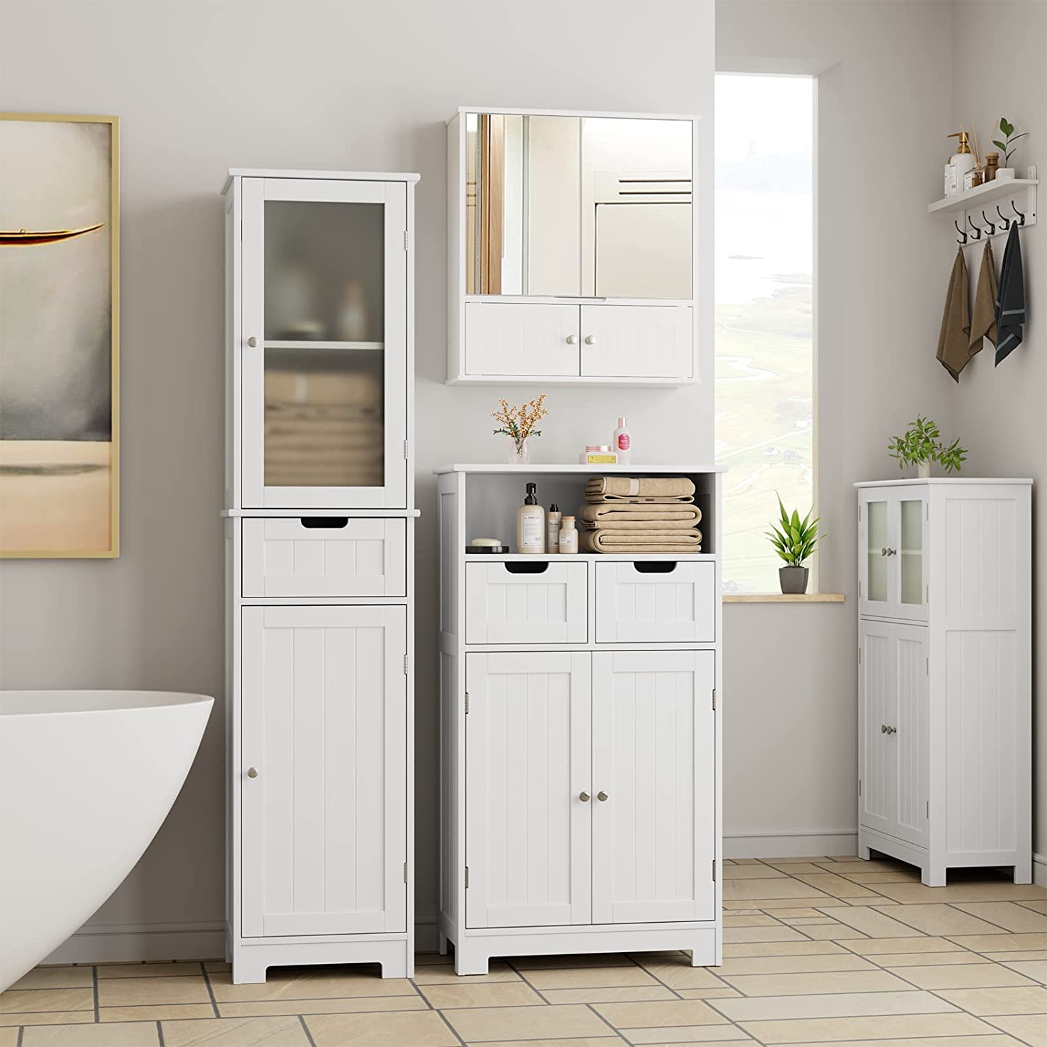 Widely Application: With its multifunctional design and appeal, you can place the white storage cabinet in the bathroom, laundry, toilets, entrance, hallway, living room and bedroom