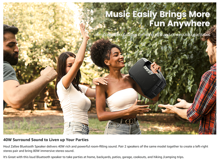 • IPX7 Waterproof Speakers - The Houl Zallee outdoor speaker is rugged enough for outdoor adventures and rigorously tested to meet IPX7 waterproof standards. It's fully water proof and can even float on water and survive being fully submerged in 3.3 feet of water for up to 30 minutes. So there is no need to worry when using it by the sea, the pool, on a boat, or in a shower room.The idea for outdoor adventures