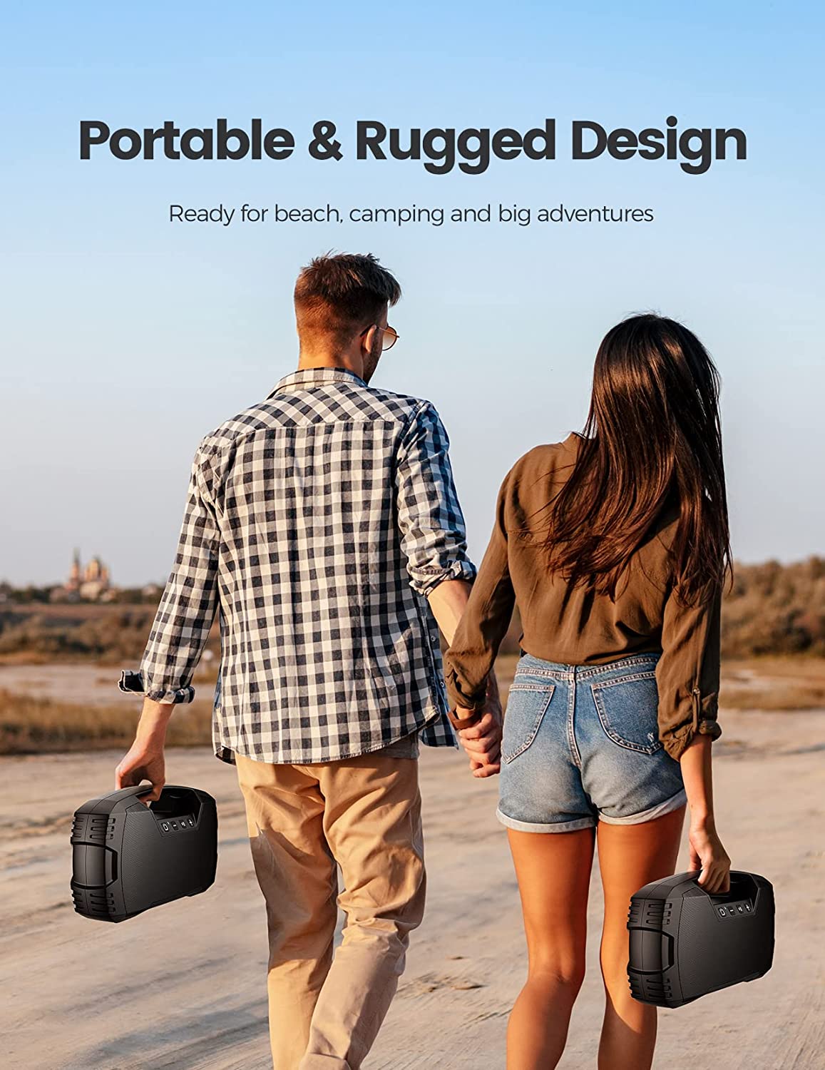 • Durable Portable Speaker with Handle: Crafted from ultra-durable ABS and metal, this portable outdoor speaker is very durable and impact-resistant. With a built-in handle, it's so convenient to carry the speaker anywhere for outdoor sports or other activities, bringing big fun with us. This big speaker is a great choice as a gift for men, women, teenagers, and seniors everyone who loves music