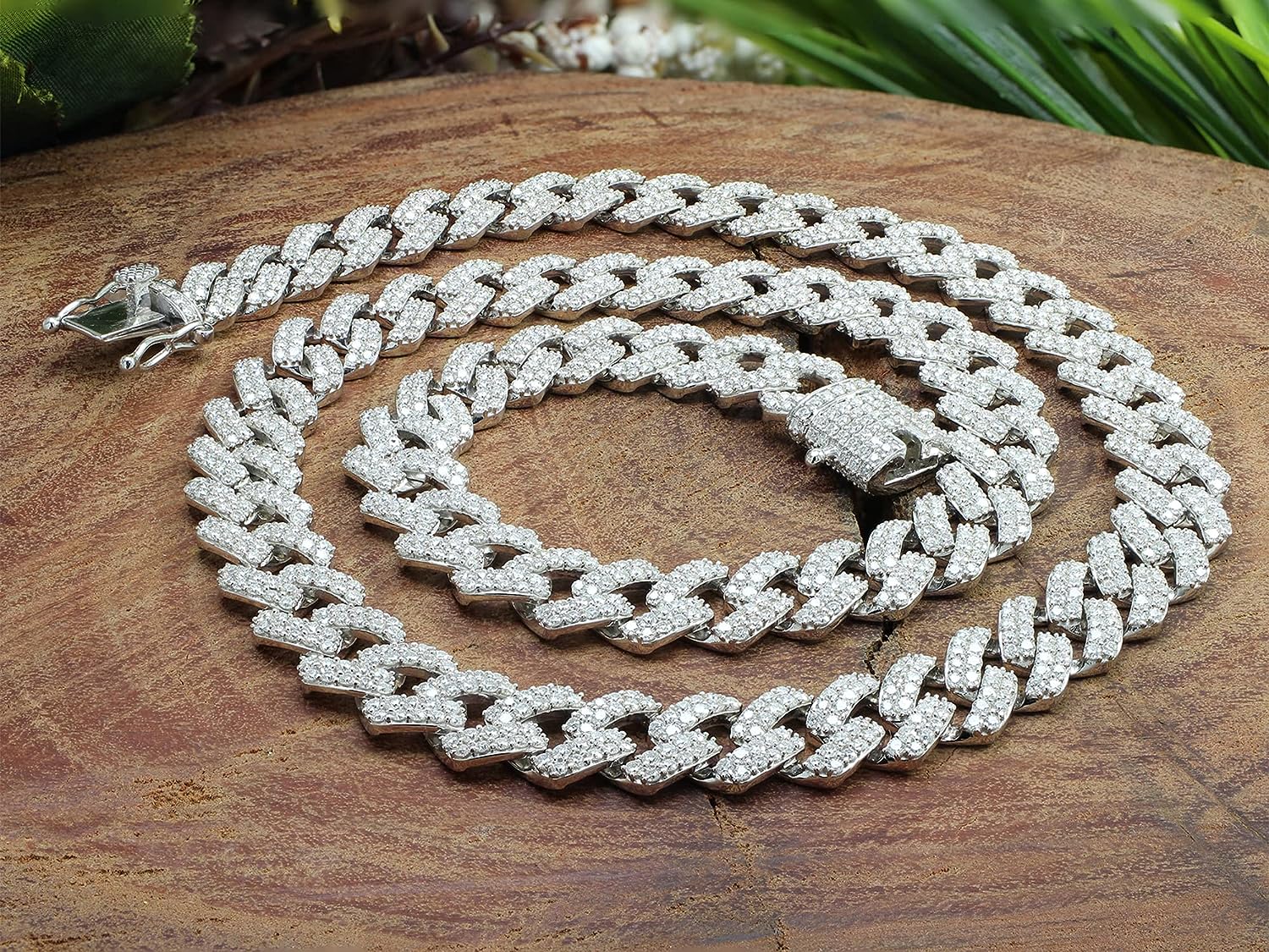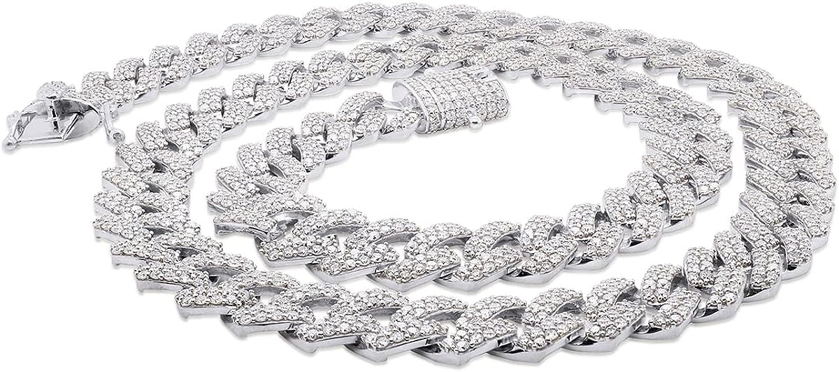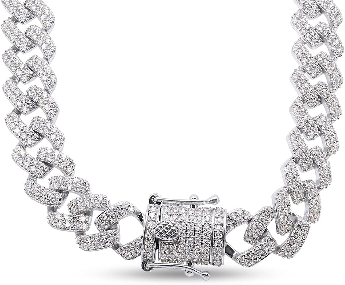 • These Cuban Chain Necklace Is crafted in 14k Rose Gold Over Sterling Silver with 925 Sterling Silver 18" , 20.00 Carat (Cttw) moissanite, Width 12MM, Round Cut, VVS1 Clarity G-H Color, Very Good Cut