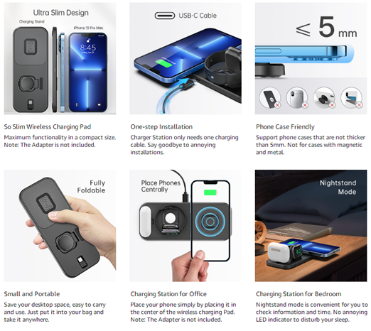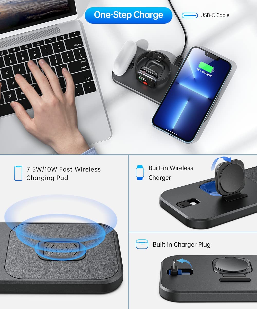 • 【All built-in charging stand】Fast wireless charging Pad for iPhone products. It has a built-in magnetic watch charger and a built-in charger for AirPods. Charging station for all apple products just need one cable.