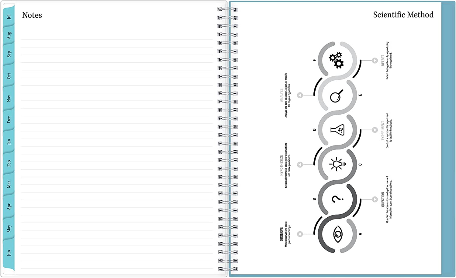 • Printed on high quality white paper for clean writing space, with premium quality covers in a fun pattern and durable, coated tabs that withstand constant use throughout the year