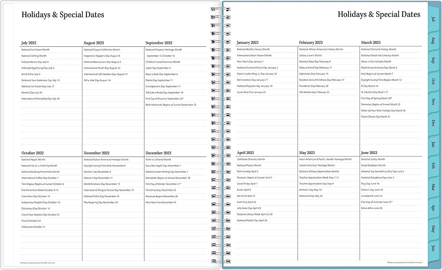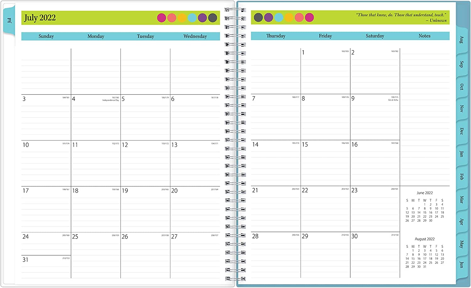 • July 2022 - June 2023 stylish day planner with 12 months of monthly and weekly pages for easy academic planning and scheduling; 3 additional monthly pages (April 2022 - June 2022) are included