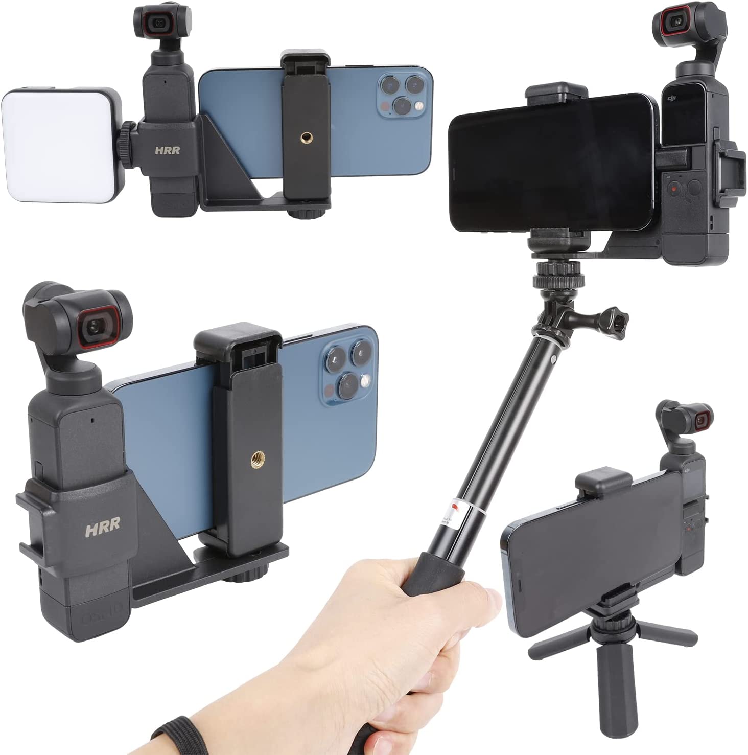 • Selfie Stick + Extended Border + phone holder:it can allow you mount your osmo pocket camera and phone together,free your hands and you can get more bigger image,make see the clear camera shooting effect,the phone clip can connect other accessories you want to expand,just like fill light and microphone
