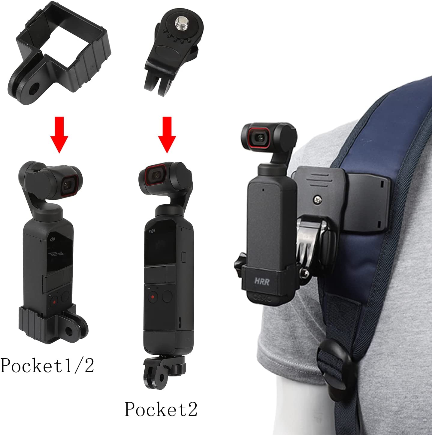 • Backpack clip + J-hook + Extended Border + Screw:Backpack made of durable ABS plastic.Mount your Osmo Pocket on your backpack,provide shooting angle of chest height,it allow you quickly disassemble from your backpack and mount it to chest mount