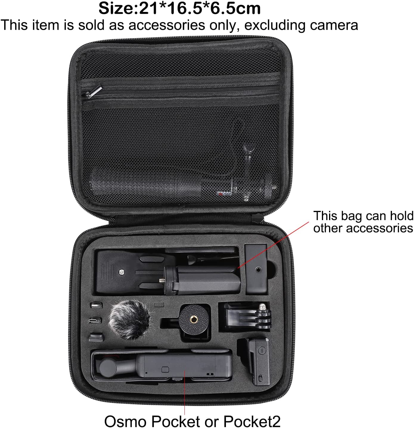 • Hard Shell Carrying Case,It consists of a hard shell case and a rigid foam pad.Open the mold according to the 1:1 ratio of DJI Osmo pocket / Pocket 2 accessories,perfect fits for its accessories like the power bank,charging wire,wireless module,accessory mount,controller wheel