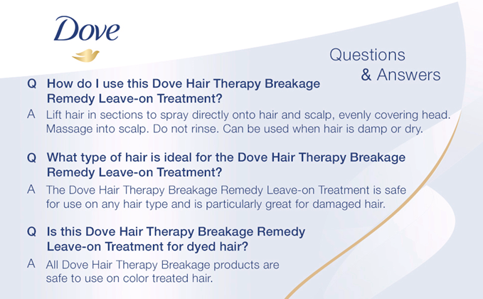 Wondering how to help make hair stronger and reduce hair breakage all at once? This Hair Therapy Regimen kit is for you. We are all about those good hair days – but hair breakage can make us feel less than our beautiful best. That’s why we created our Dove Hair Therapy Breakage Remedy Regimen System for damaged hair. Giving your hair the care it deserves, this strengthening regimen system blends all the care of Dove you know and love, with expert hair care for breakage. Made with our Nutrient-Lock serum, this Breakage Remedy system helps your hair look thicker, stronger, and healthier. Simply smooth it on to enjoy thicker-looking hair with 97 percent less breakage** – and say hello to good hair days every day. Perfect to remedy hair breakage. This strengthening regimen system is made with Nutrient-Lock serum, a mixture of dipeptides and conditioning actives, to help make hair stronger and reduce hair breakage. Gentle, nourishing hair care with a gentle, caring formula, this 3-step system (consisting of our Breakage Remedy shampoo, paraben-free conditioner, and a leave-in treatment) leaves you with beautiful, healthy-looking strands and a refreshed scalp from the first use. Being kinder to the planet: Dove Hair Therapy Breakage Remedy Regimen System has packaging made from 70 percent recycled plastic, so you can be kind to your hair and the environment. Our Hair Therapy range carries the PETA Cruelty-Free logo for added peace of mind. Globally, Dove does not test on animals and is certified Cruelty-Free by PETA.