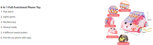 • ☎【A combination of phone music toys】: kids cell phone girl analog phone toys with integrated lights and sounds. Baby phone toy has 31 buttons, including musical instruments, music, lullabies, numbers, piano, and games, which can increase children's interest in music and enhance the hand-eye coordination of young children, children can easily drag the baby toy phone cartoon machine to anywhere by dragging the tow rope.