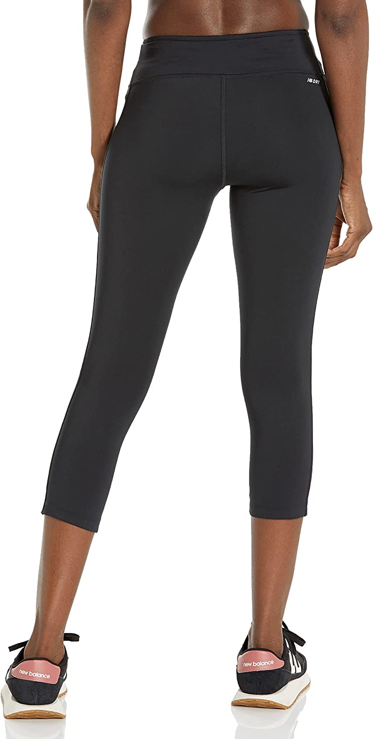 Women's New Balance® Accelerate Capri :: The ultimate stretch double knit gives our Accelerate Capri the ultimate fit. Plus, an inner storage pocket, reflective NB logo, quick-dry performance fabric and a pink ribbon logo give it all-around style and function.