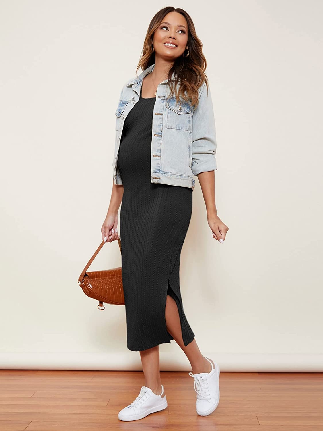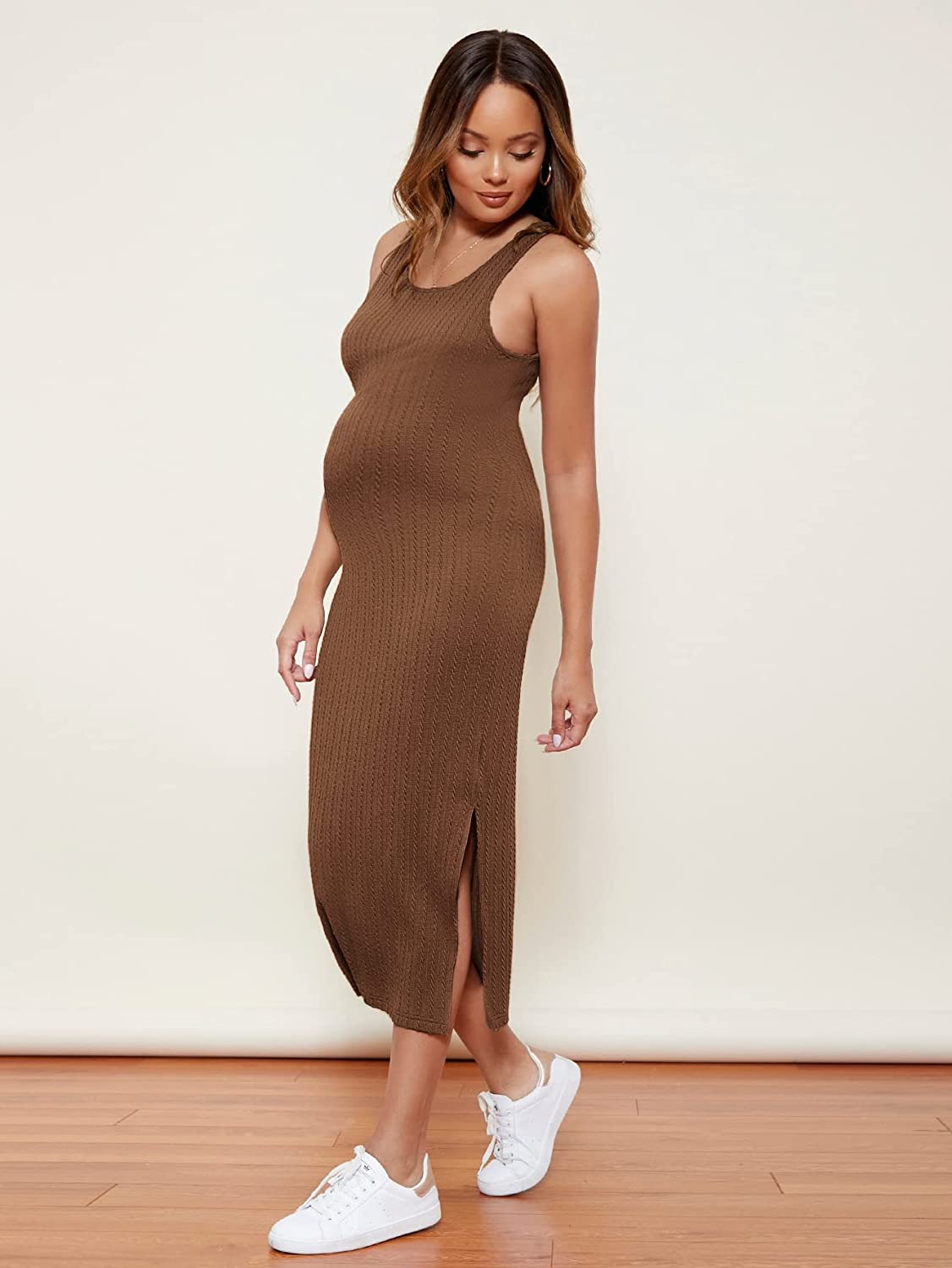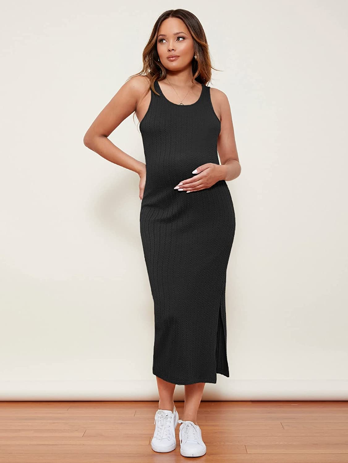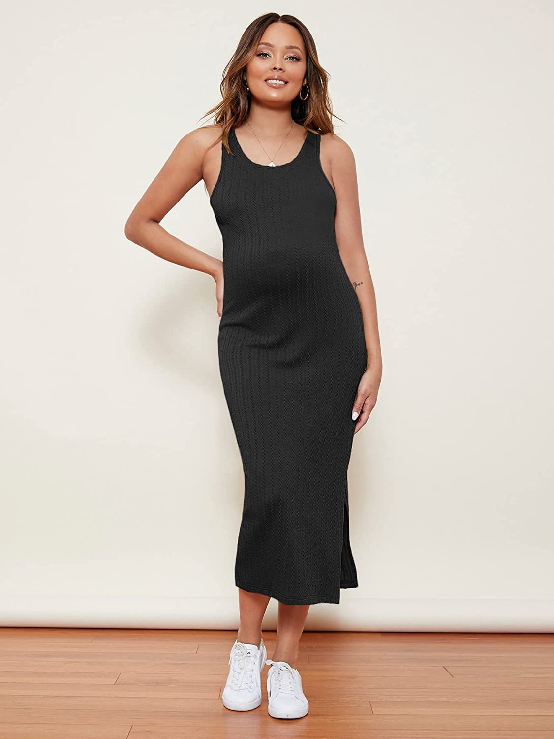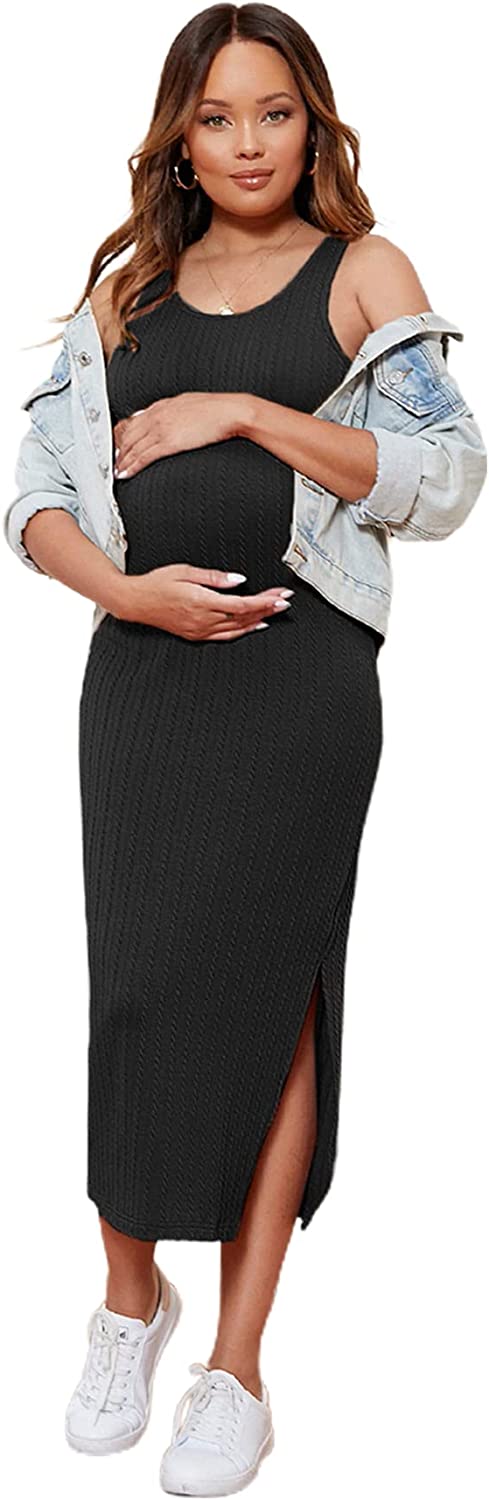 Romwe Women's Maternity Rib Knit Split Side Sleeveless Bodycon Tank Pencil Dress