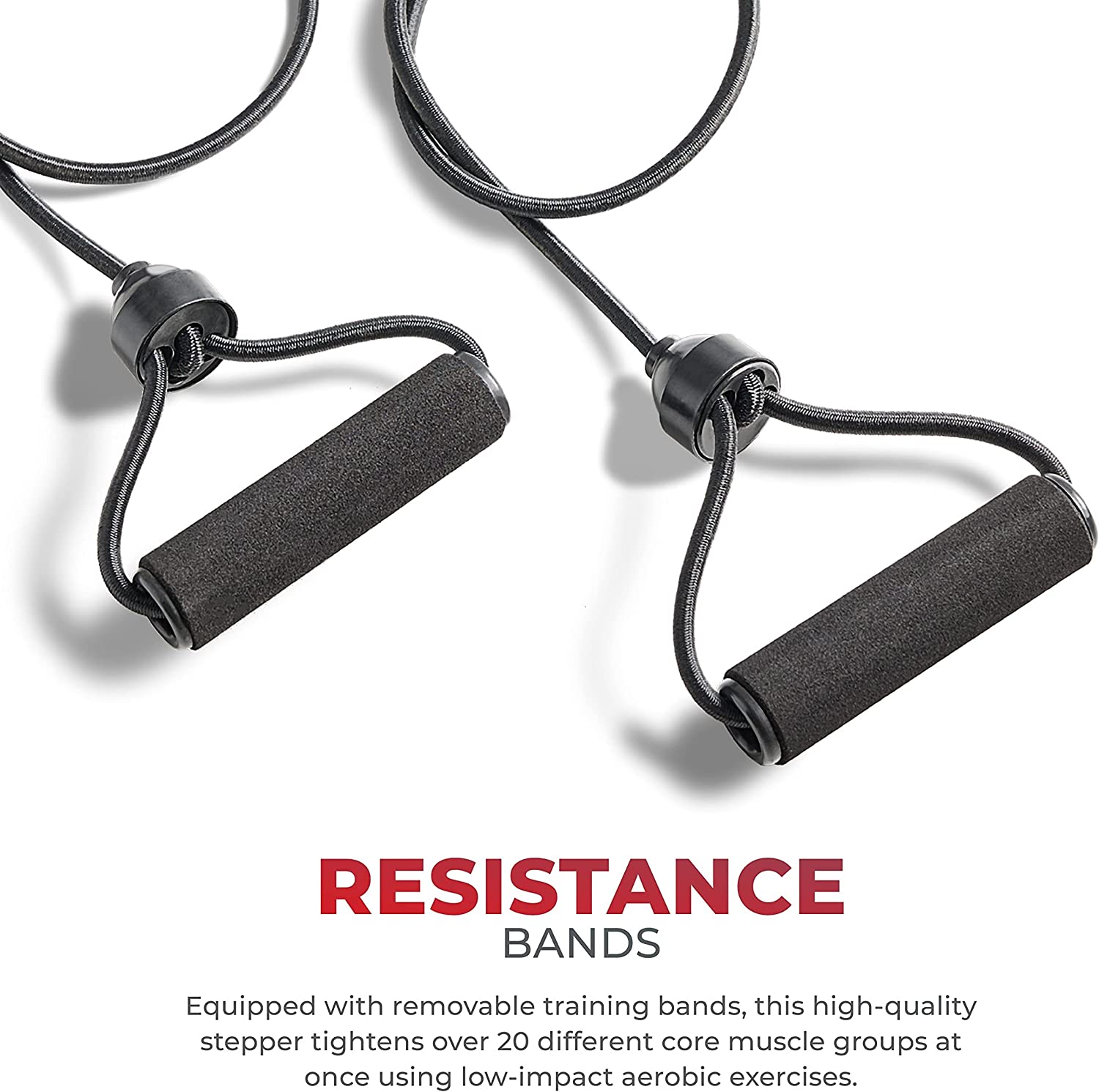 • FULL BODY WORKOUT: Keep your core, glutes, arms, and shoulders engaged for a multifunctional workout. Engage key muscle groups through consistent form while stepping and using the resistance bands which come included.
