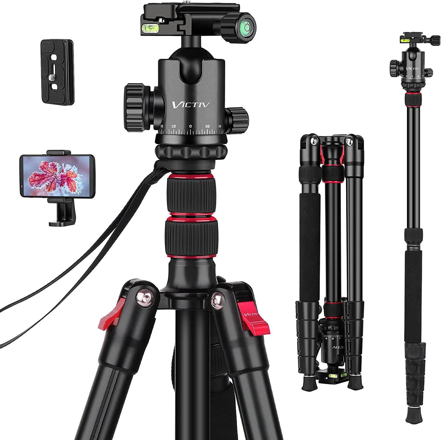 Tripod Camera Tripod, Victiv 82 inches Aluminum Tripod for DSLR, 80 inches Monopod, Lightweight Tripod with 360 Degree Ball Head Loads Up to 30 lbs for Travel and Work